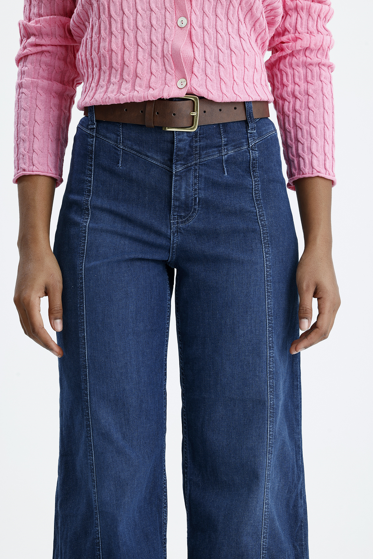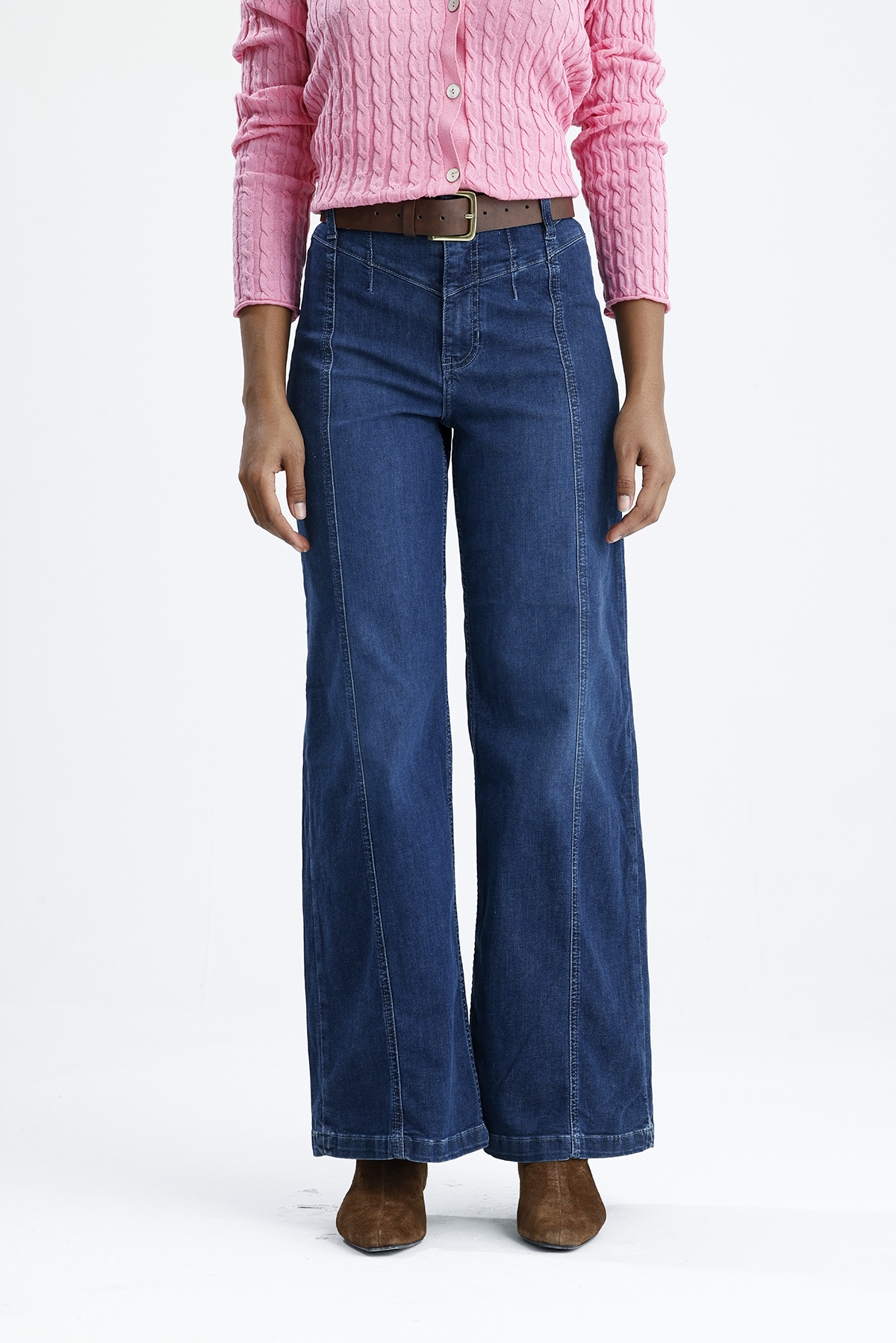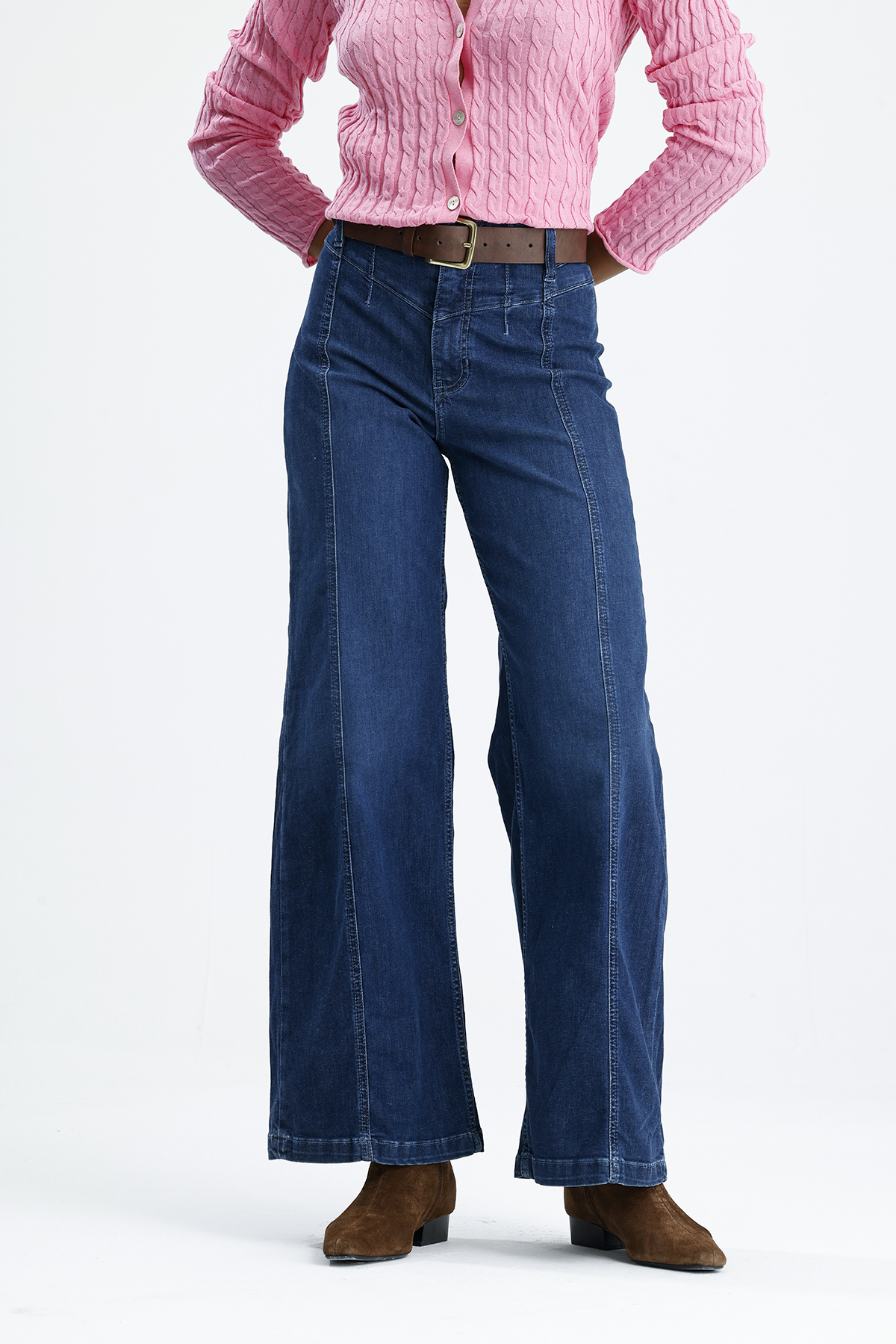 Wide Leg Cepsiz Dikiş Detaylı Jean Pantolon
