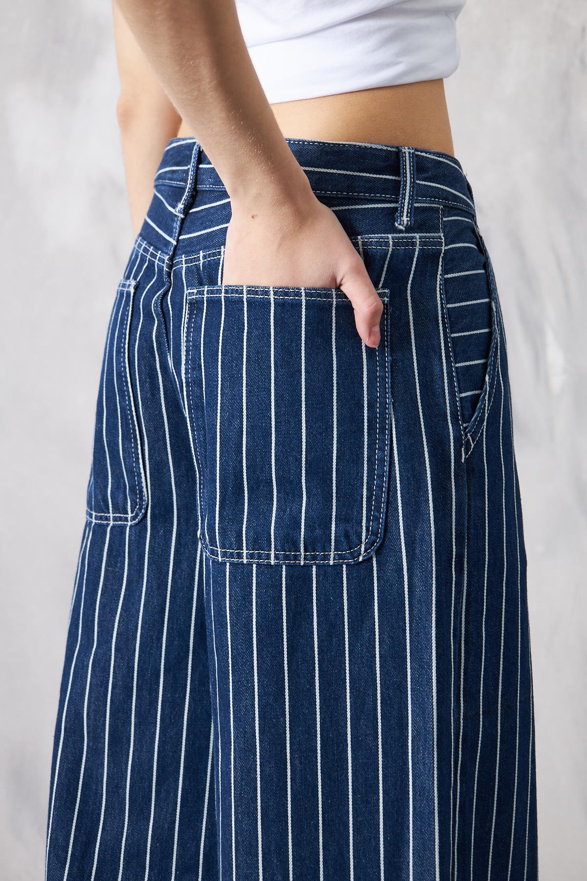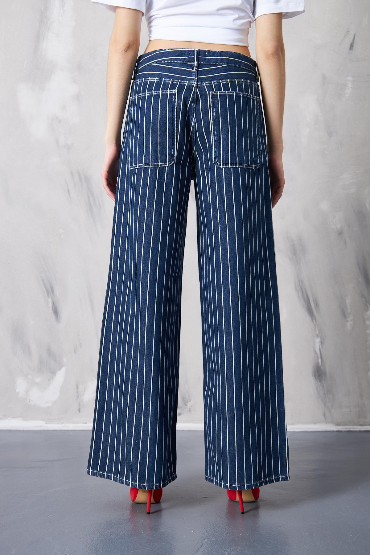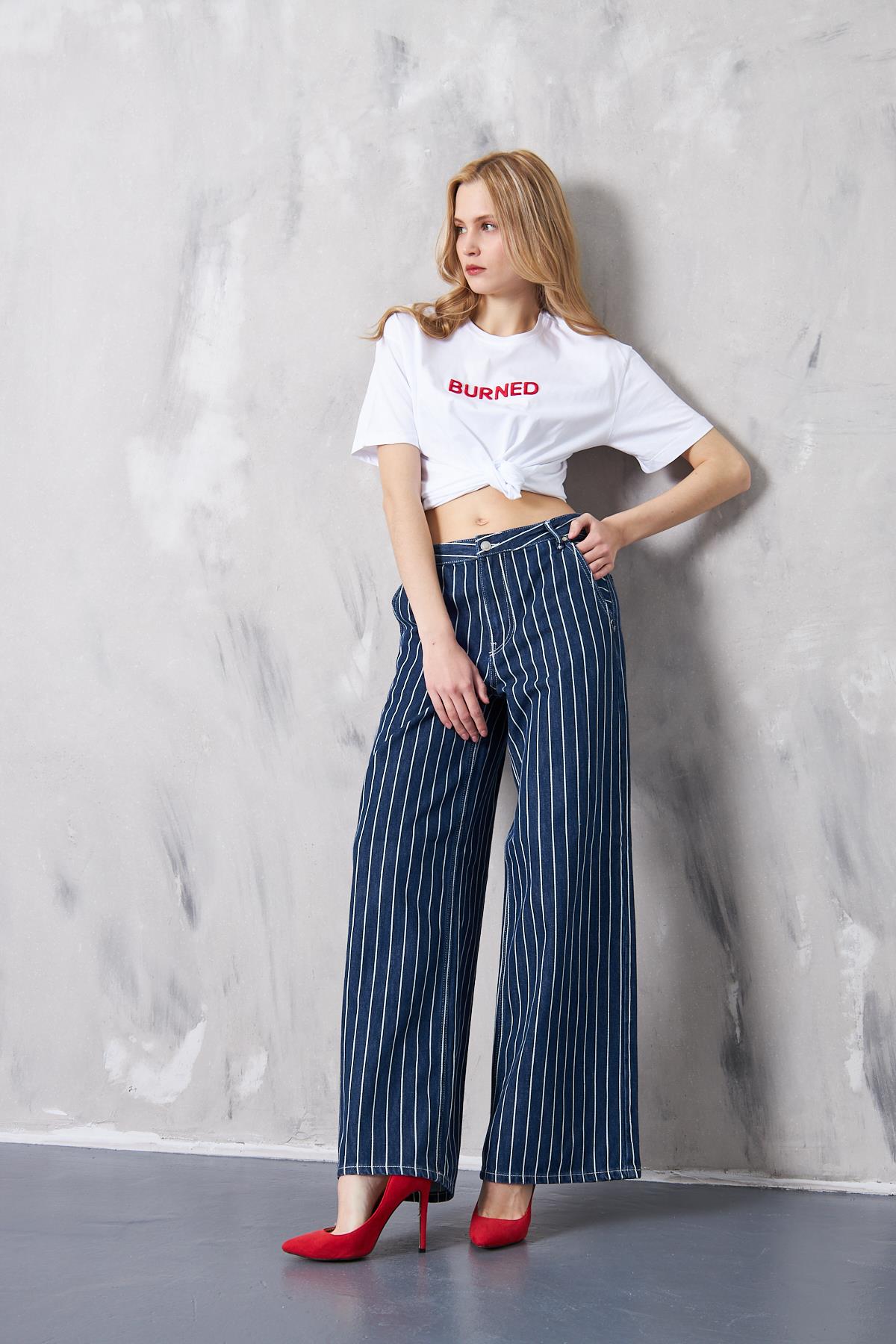Wide Leg Çizgili Jeans