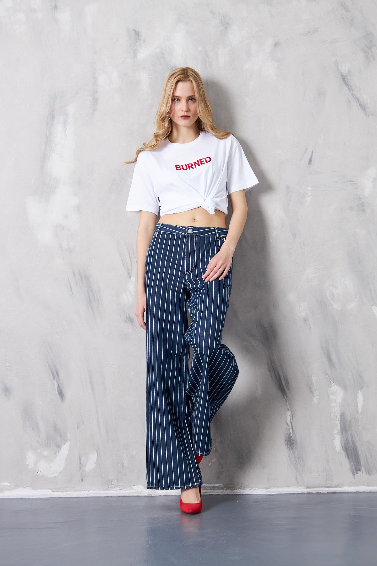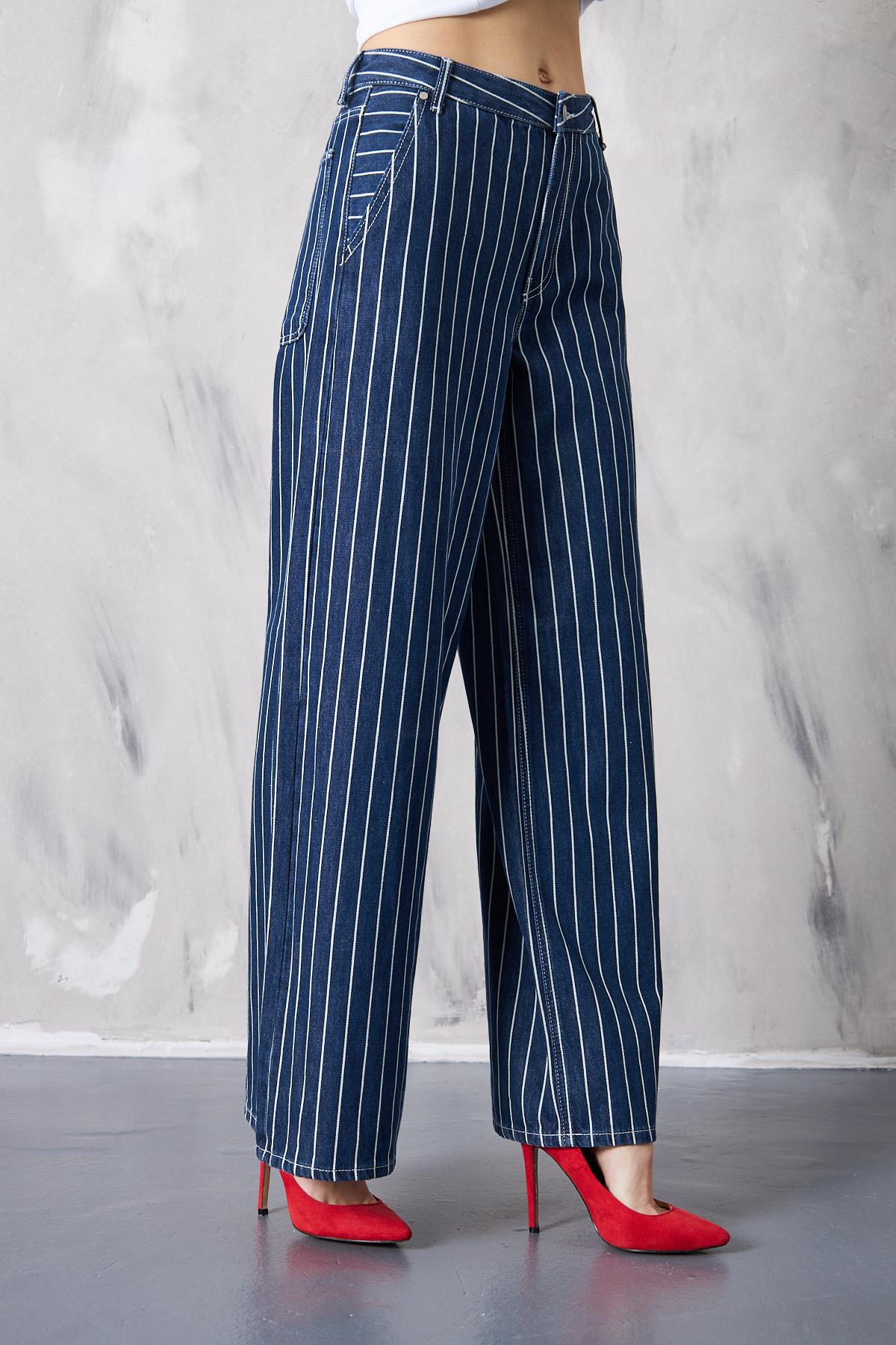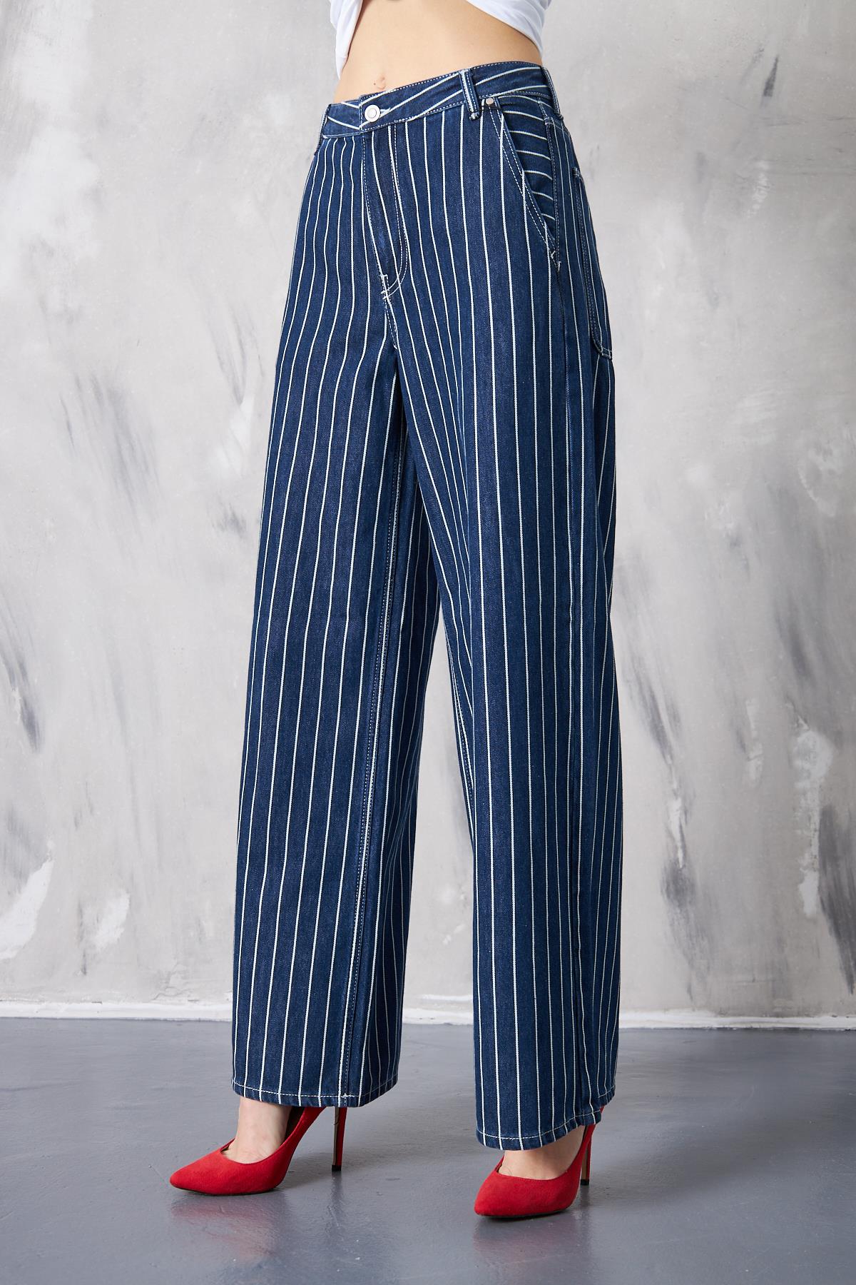 Wide Leg Çizgili Jeans