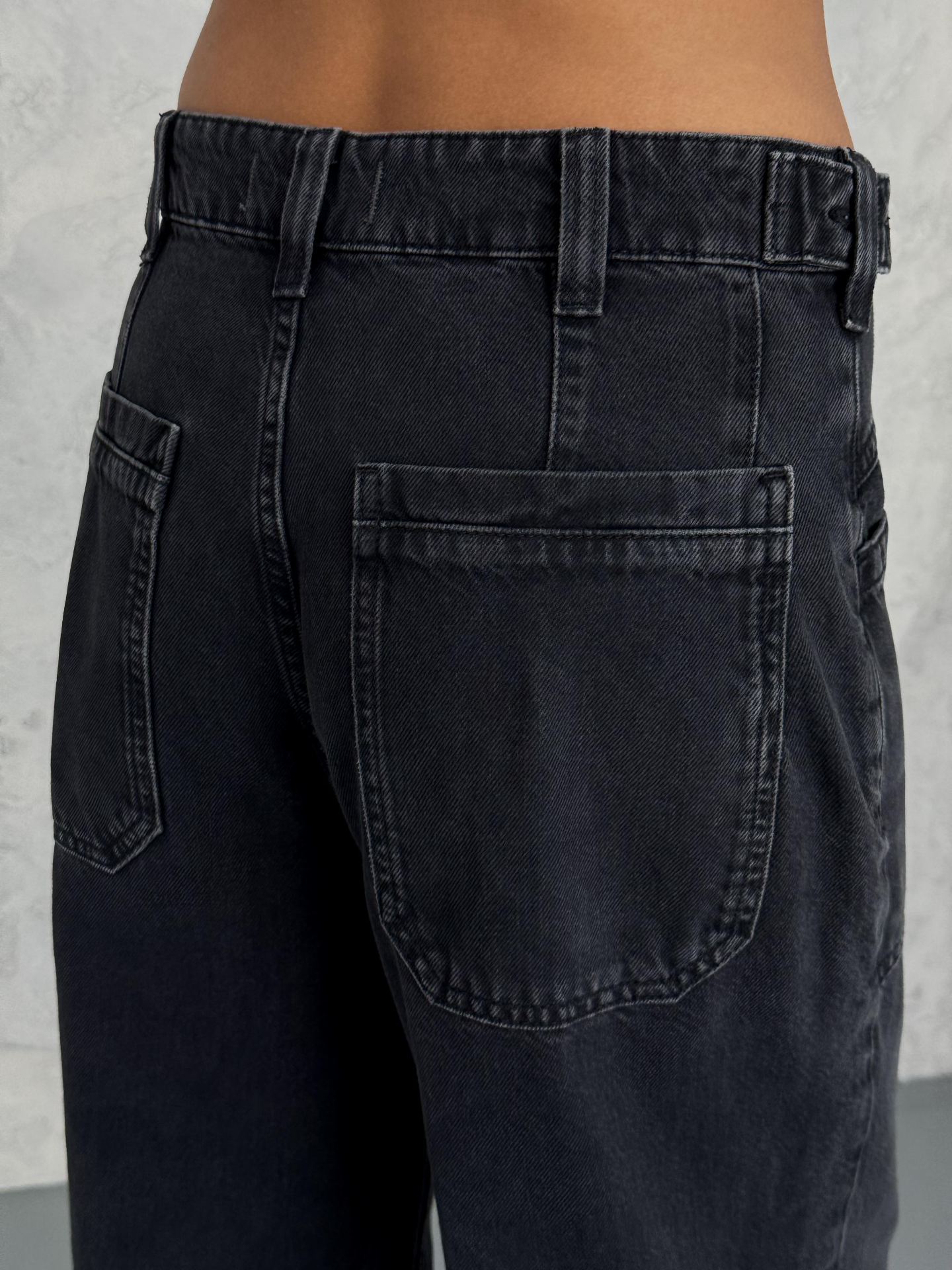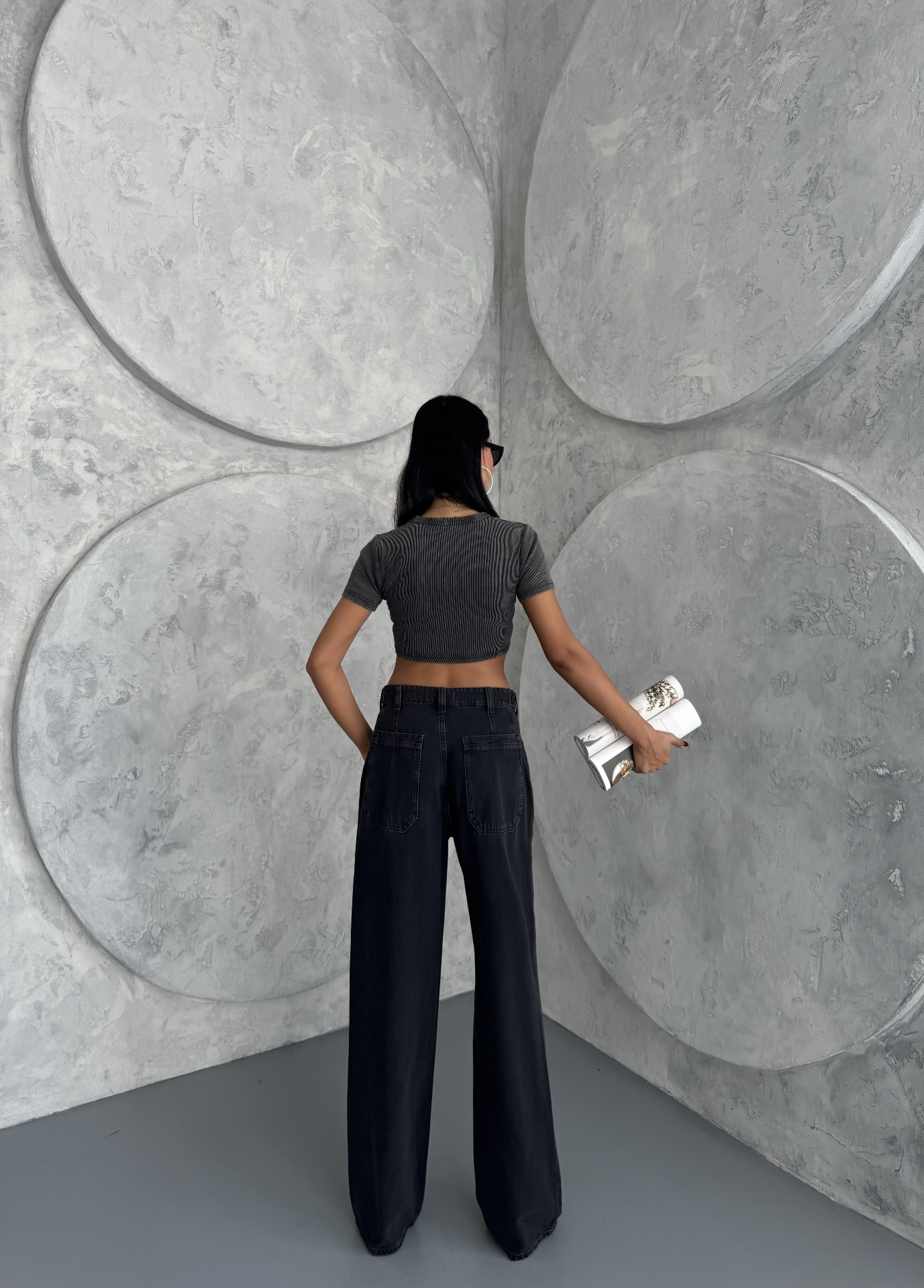 Wide Leg kemer Düğmelı Ön Cepler Jeans Pantolon