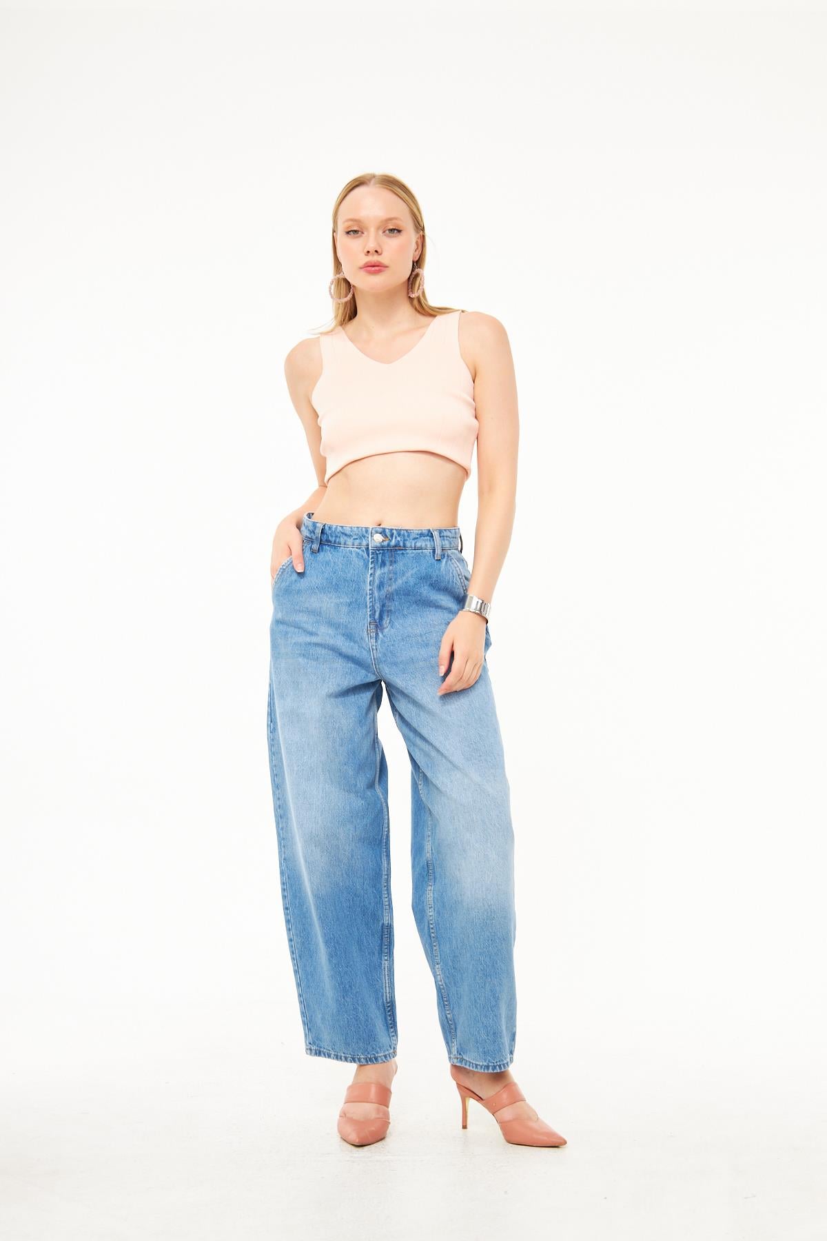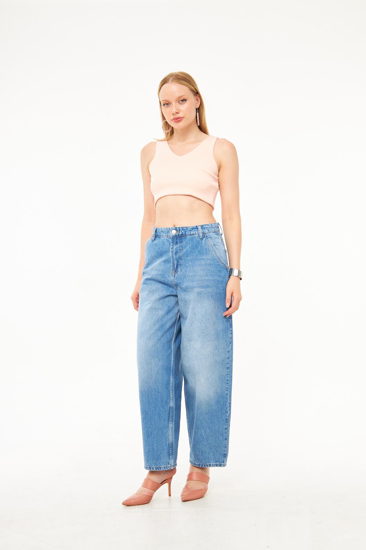 Yan Cep Detaylı Denim Pantolon