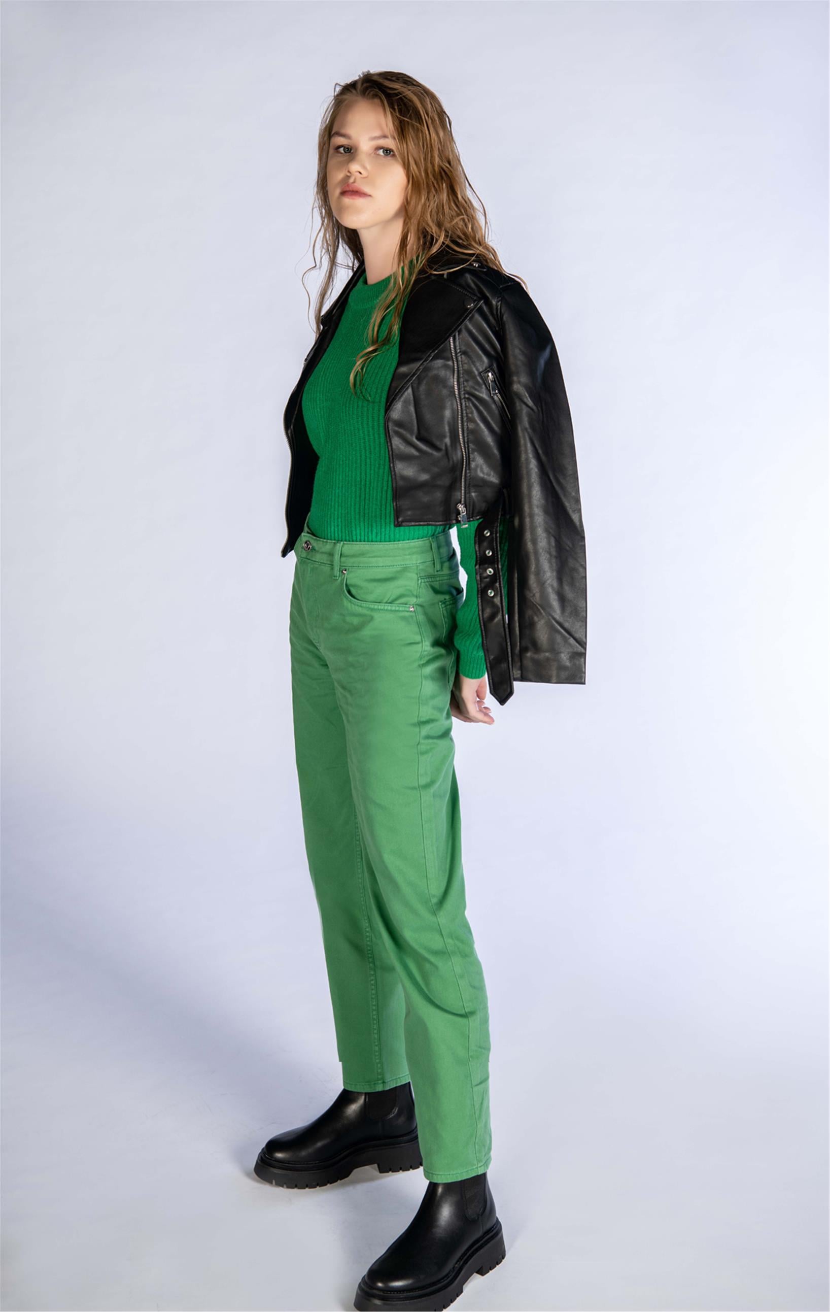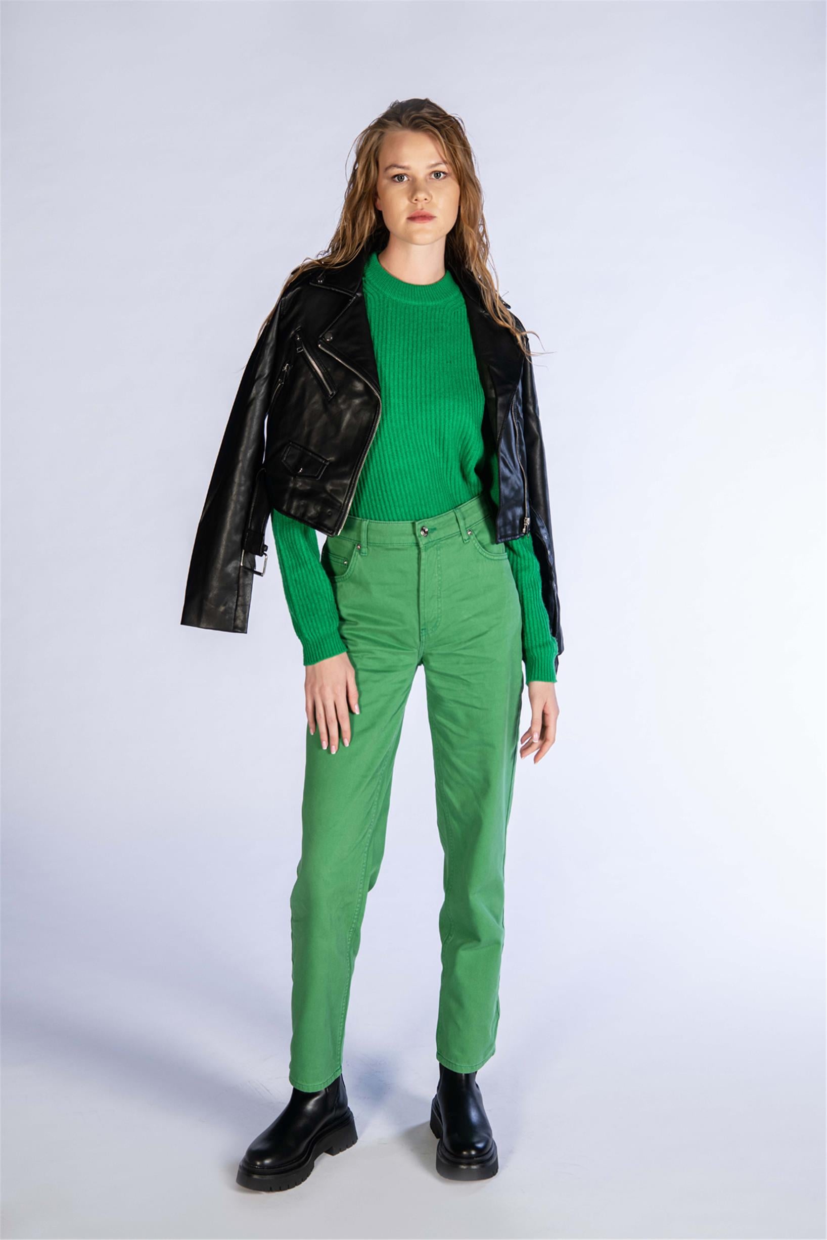 Yeşil Yüksek Bel Mom Jeans