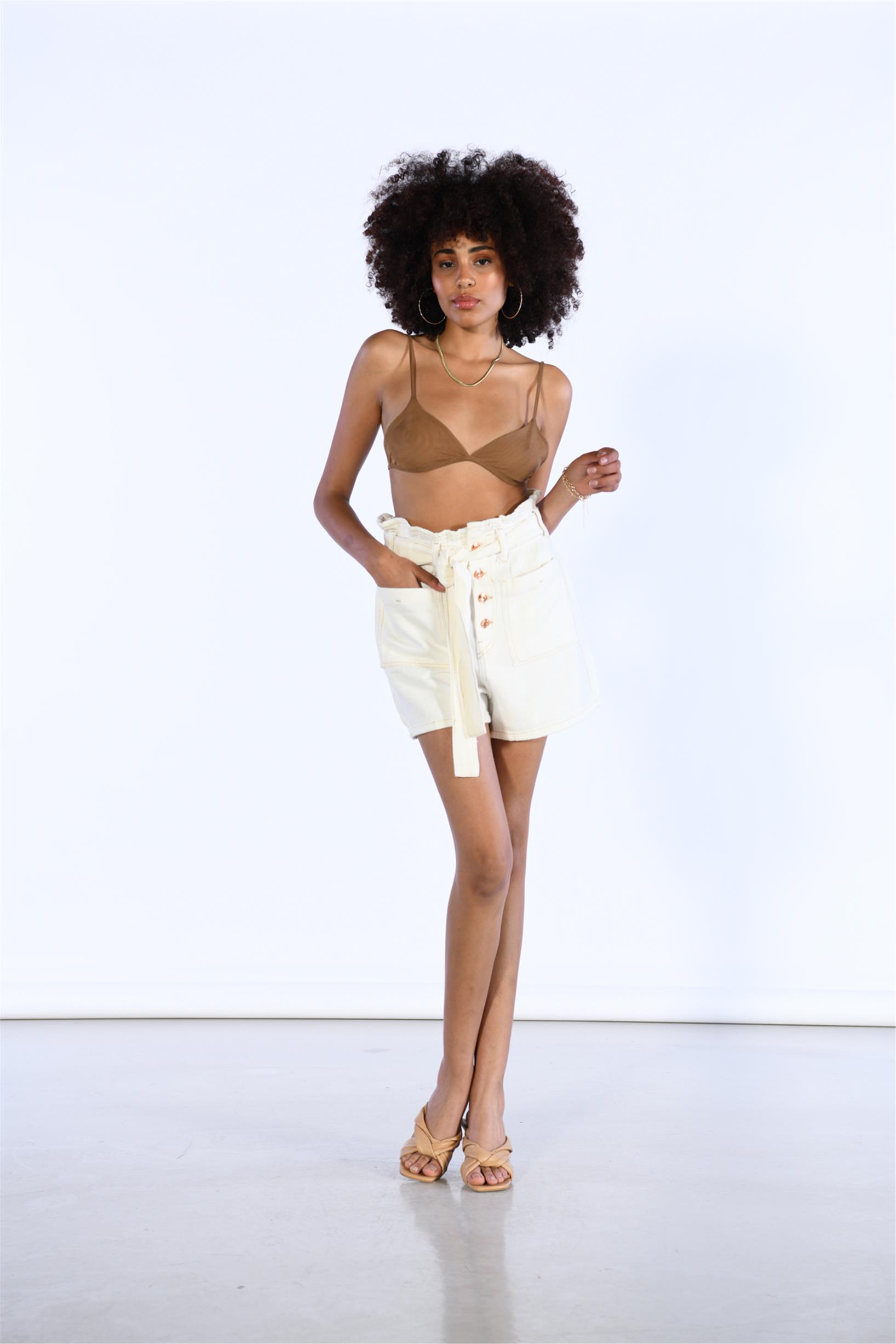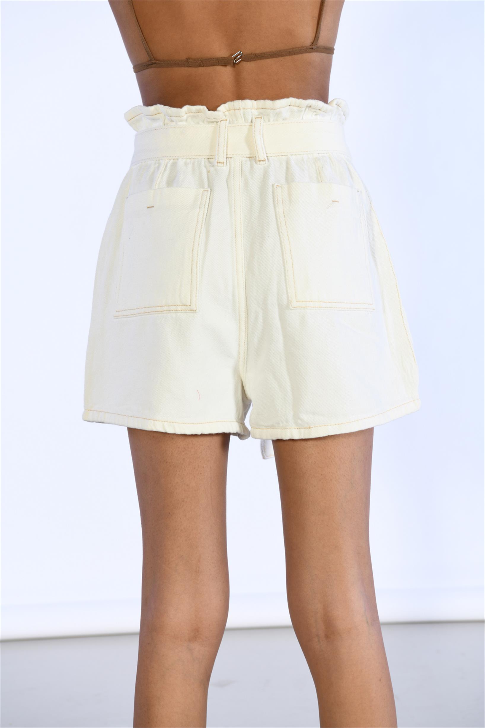 Yüksek Bel Cep Detaylı Kemerli Şort