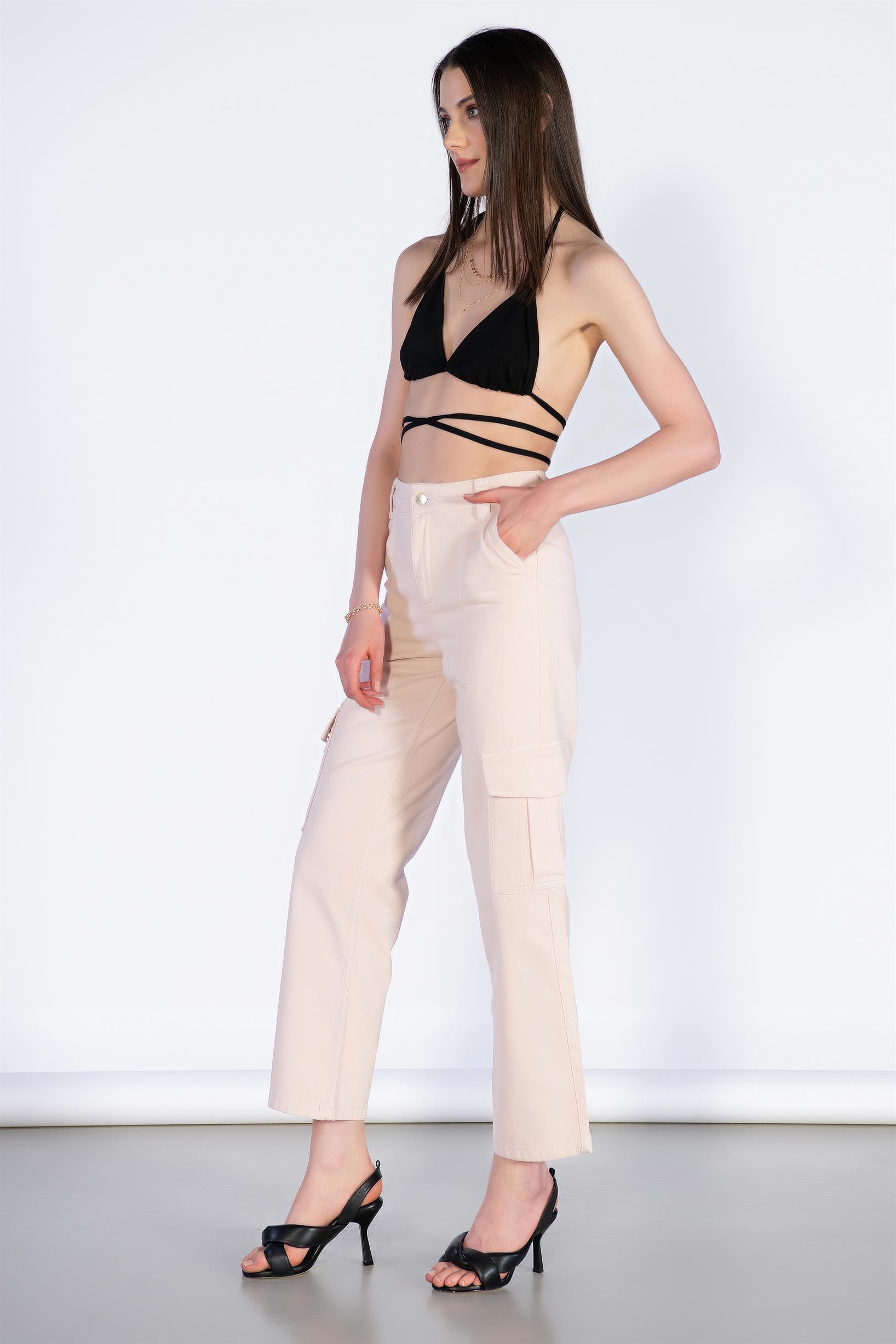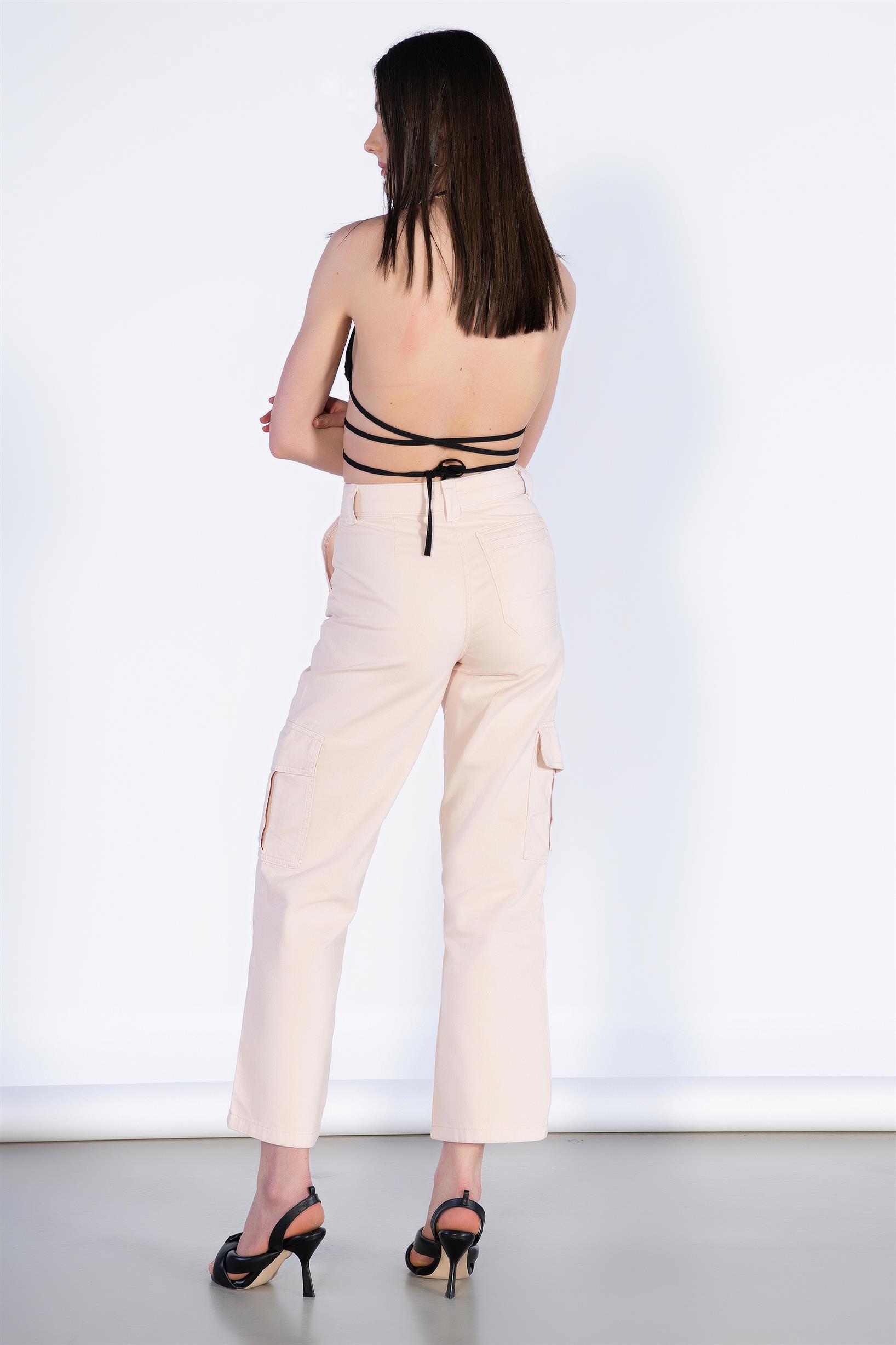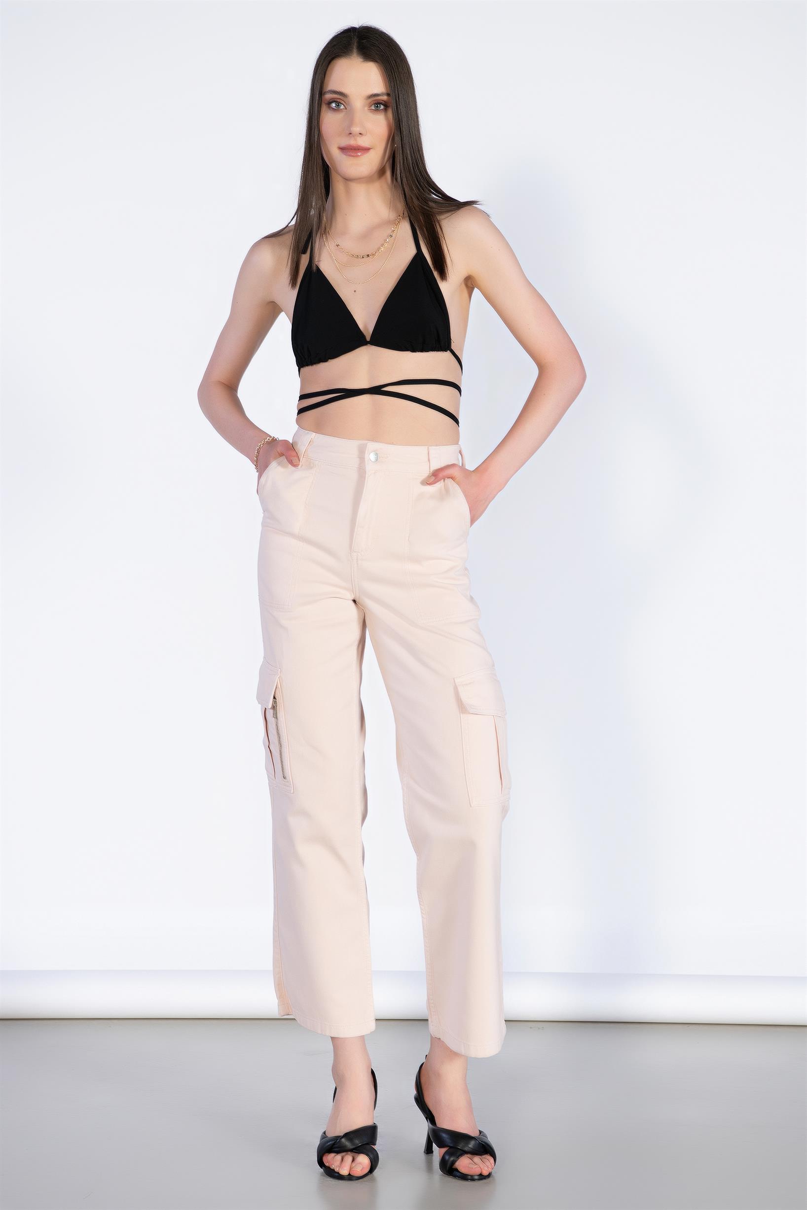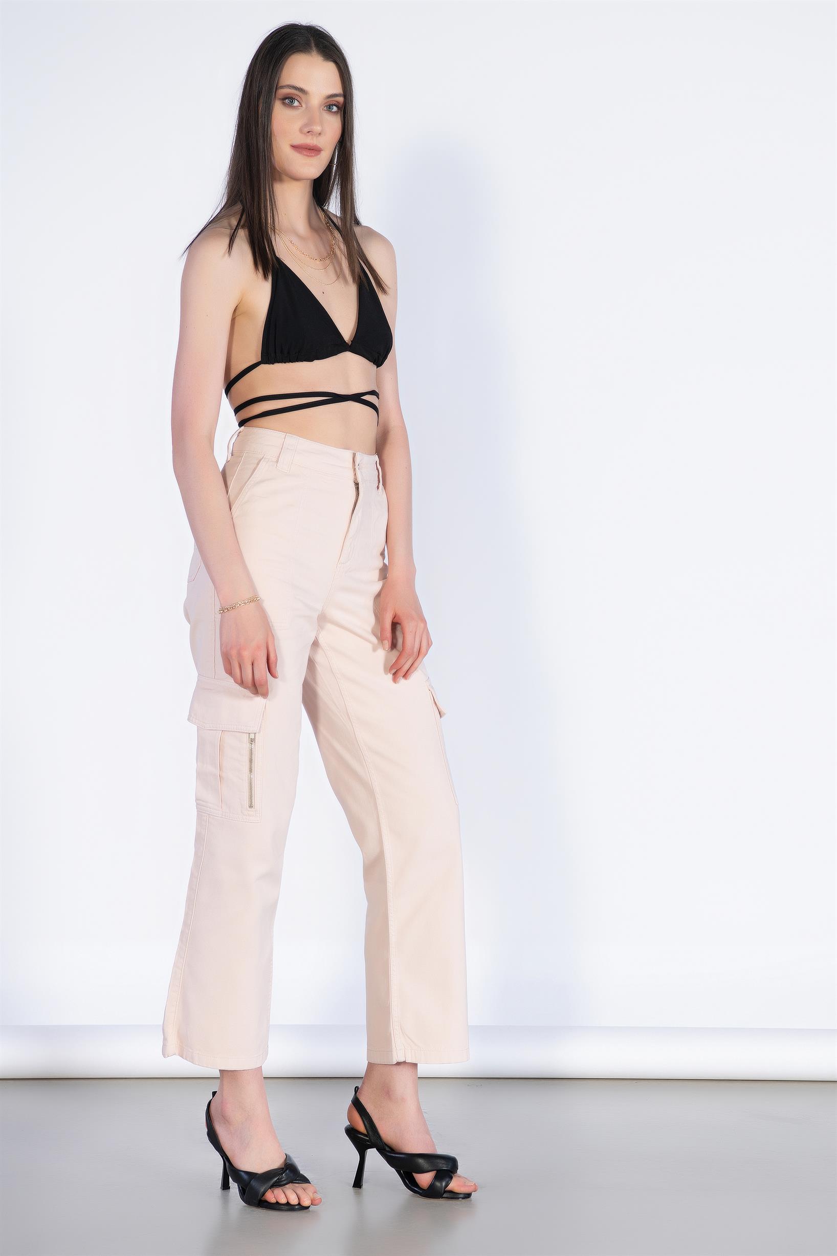 Yüksek Bel Fermuar Detay Kargo Pantolon