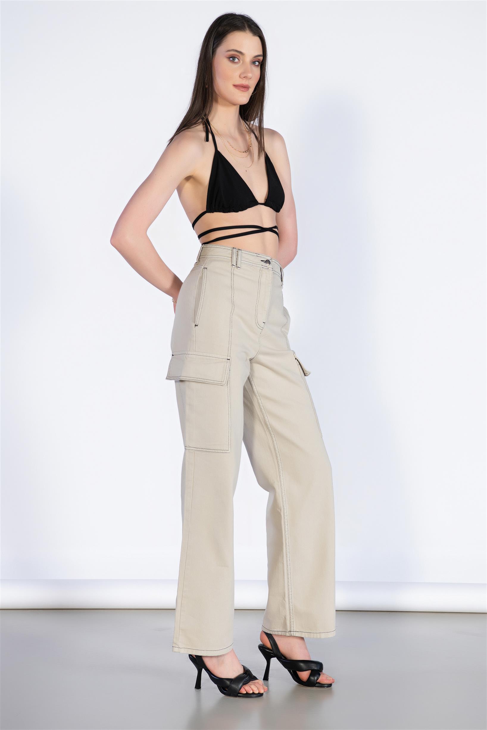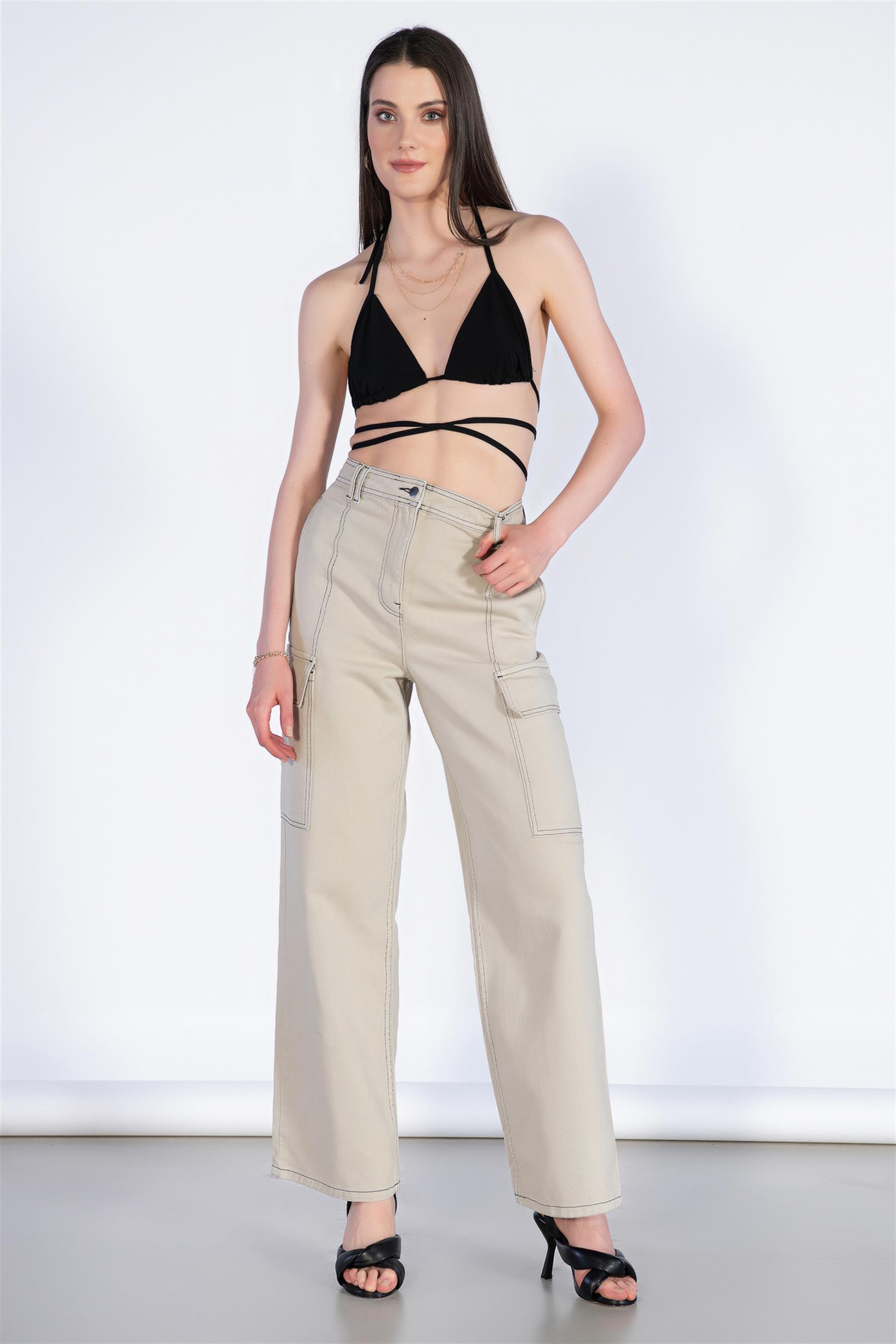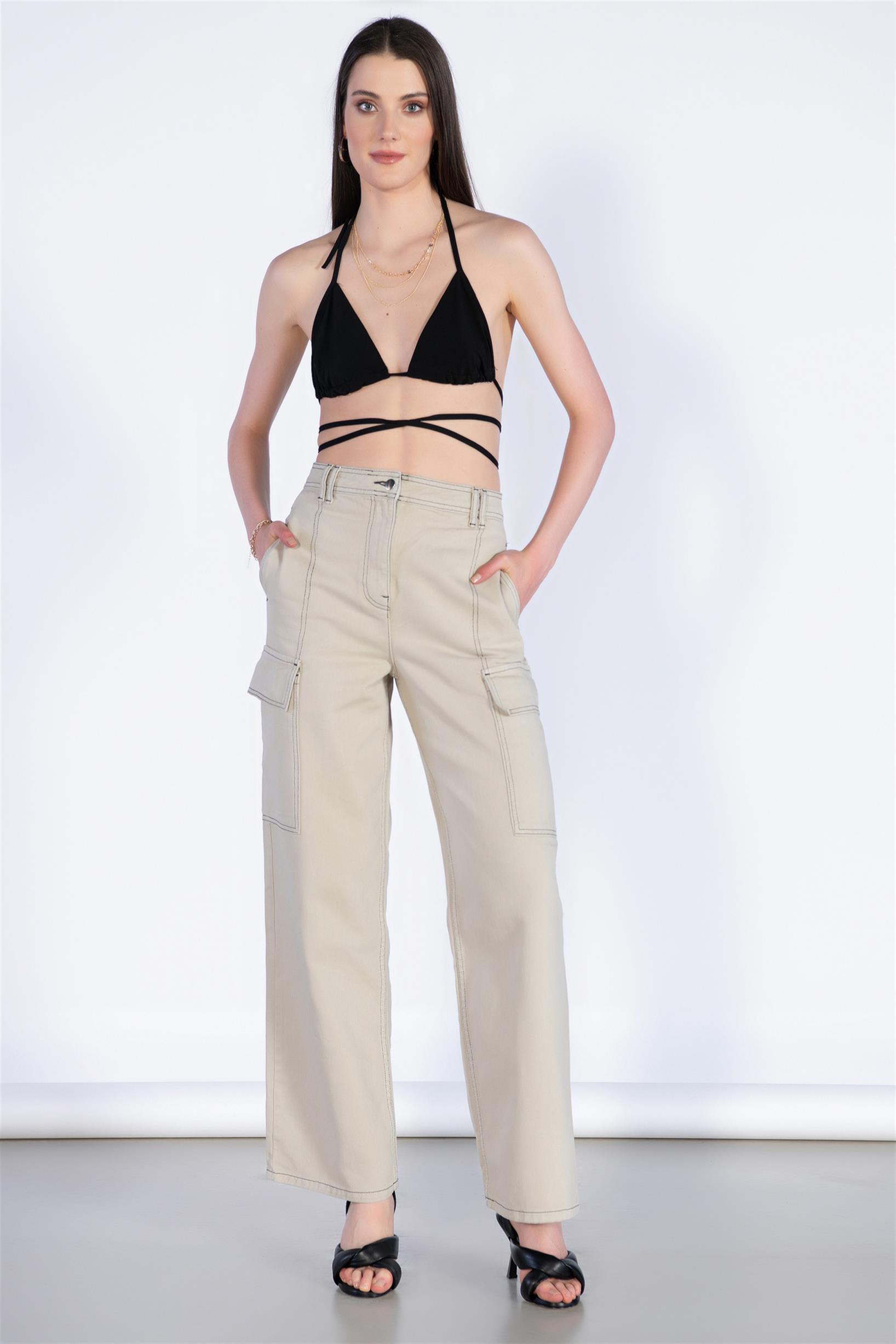 Yüksek Bel Fermuar Detay Kargo Pantolon