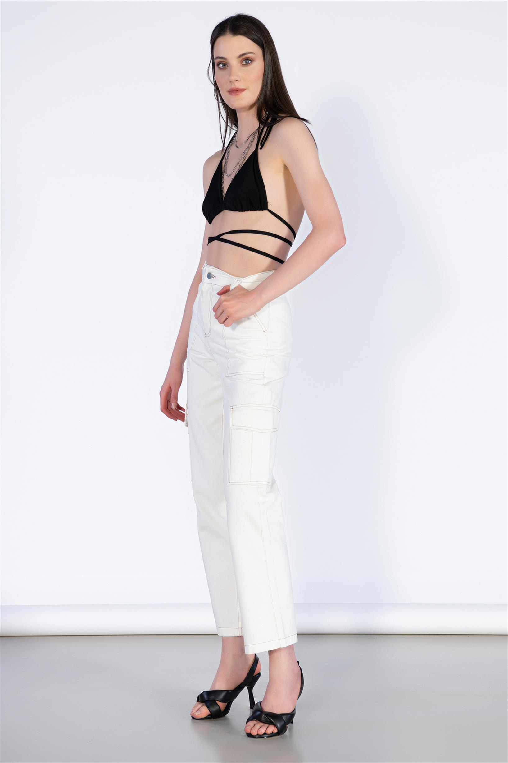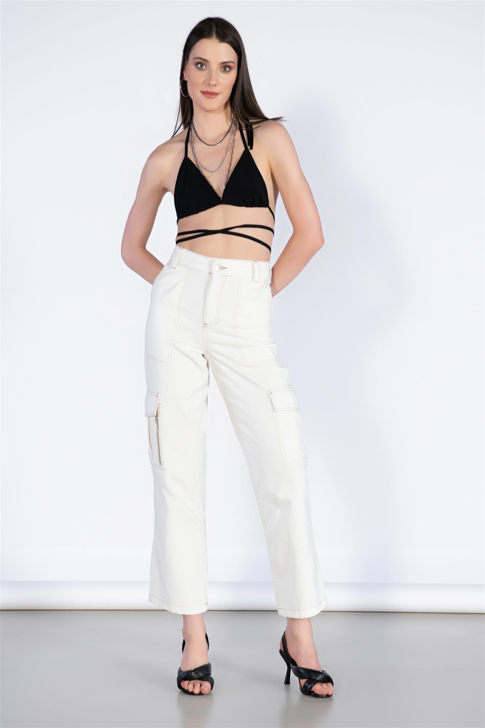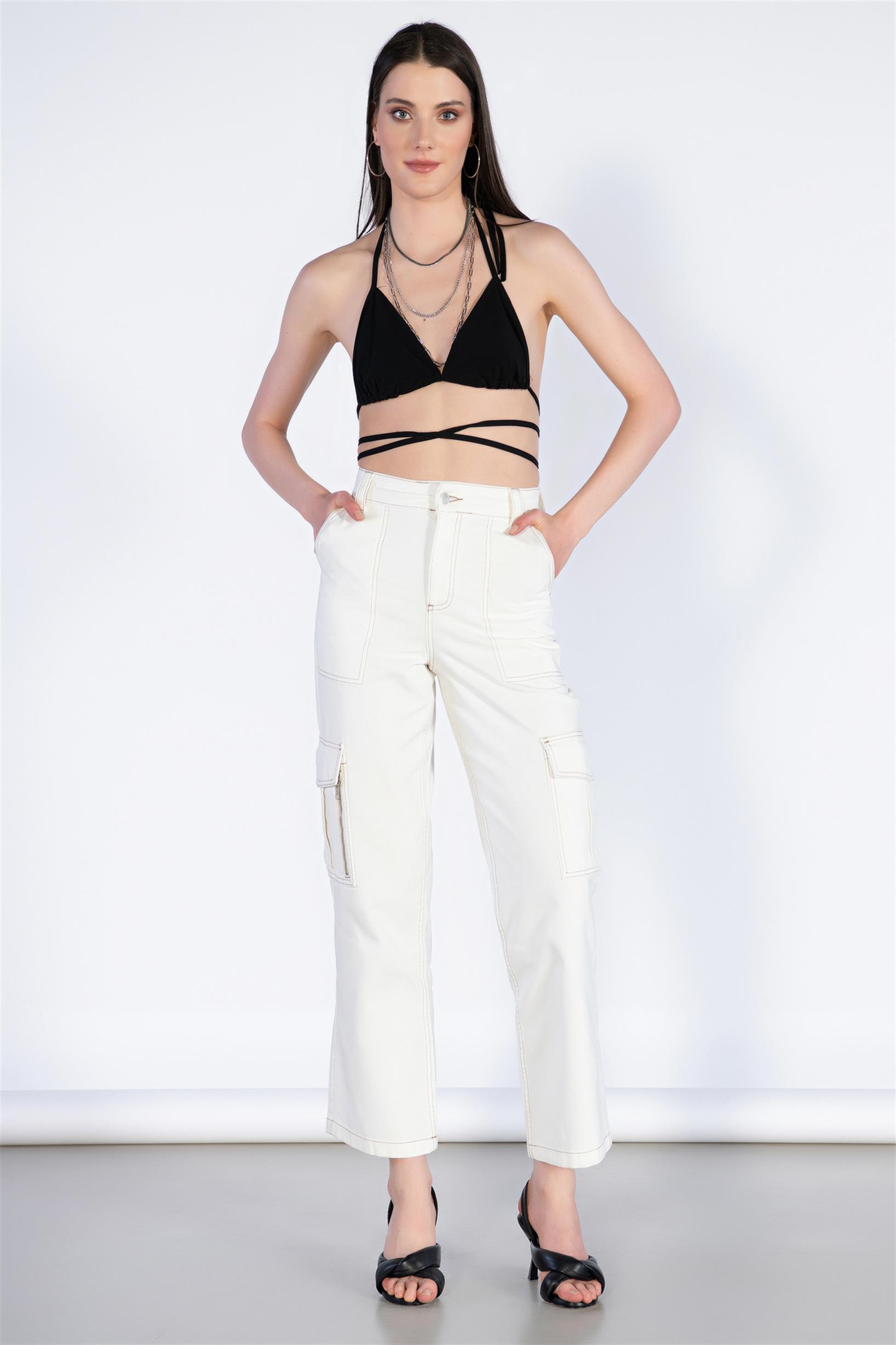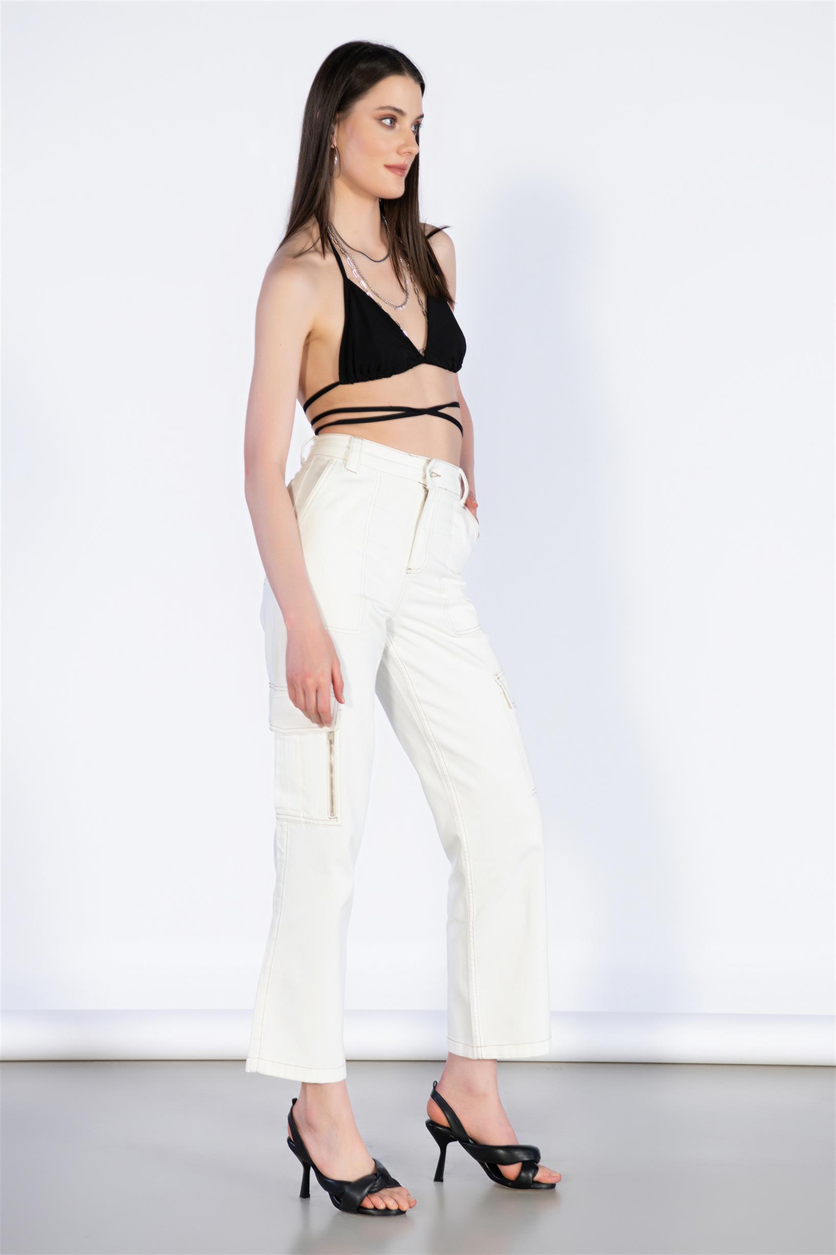 Yüksek Bel Fermuar Detay Kargo Pantolon