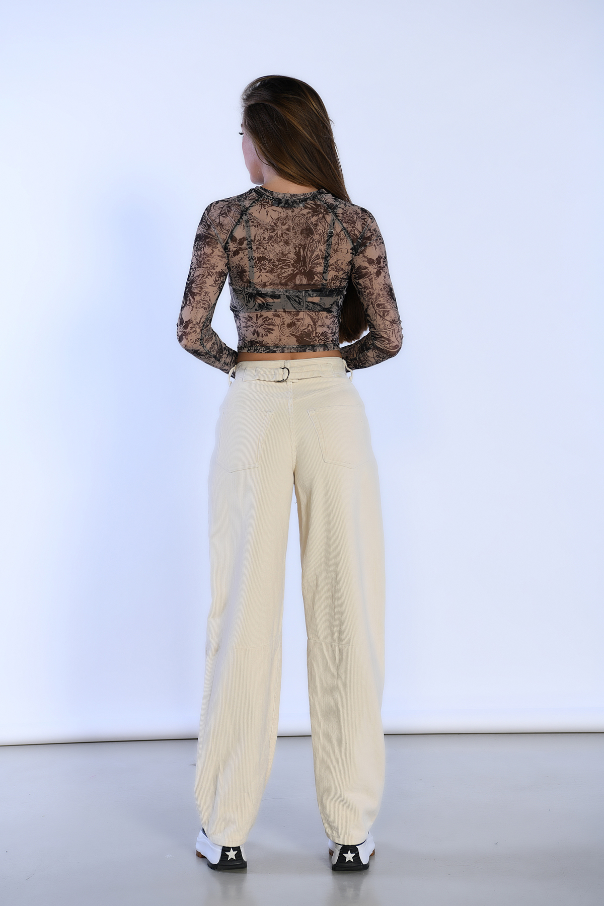 Yüksek Bel Fitilli Kadife Beli Tokalı Mom Pantolon