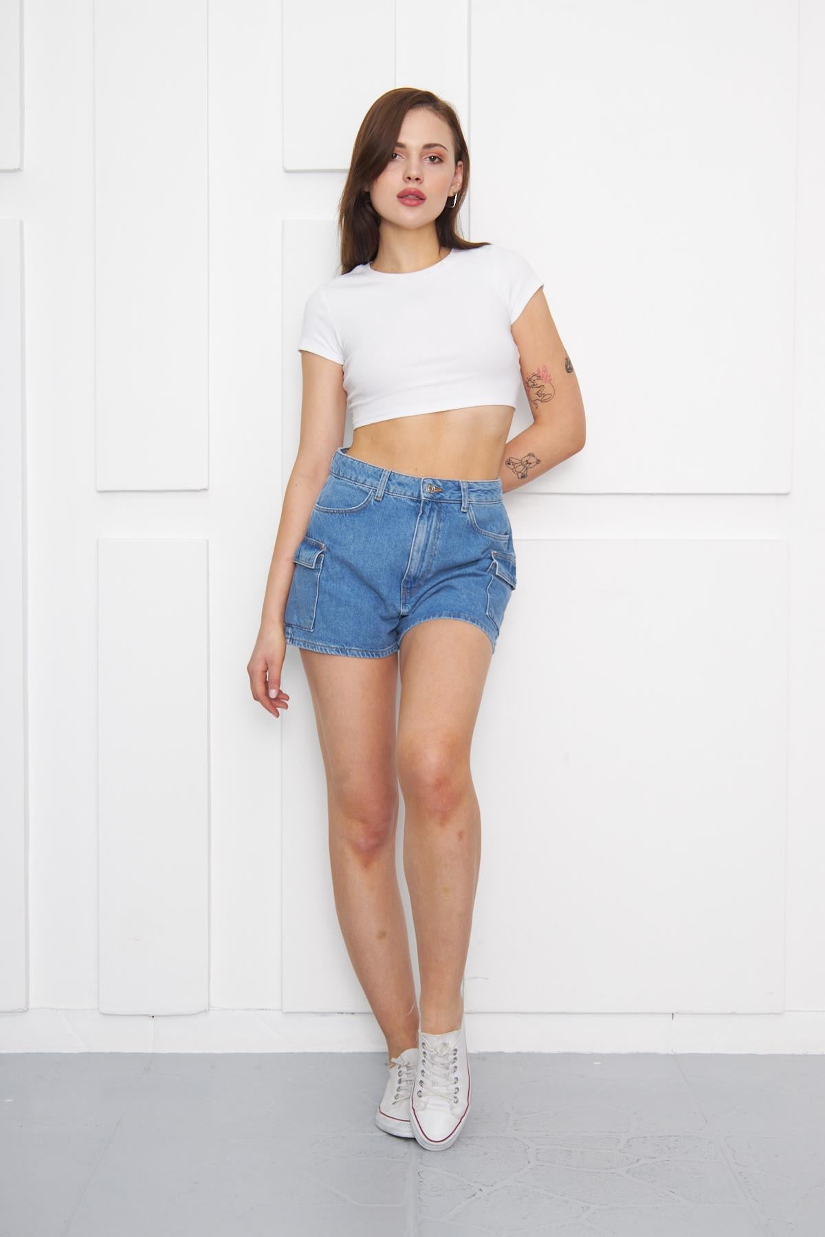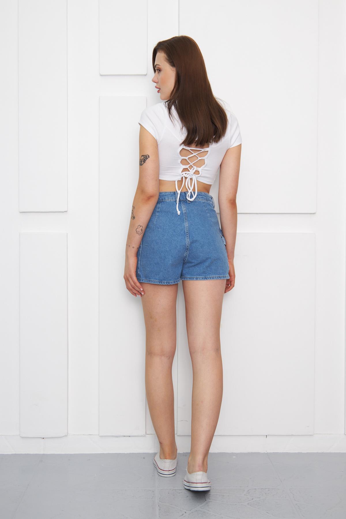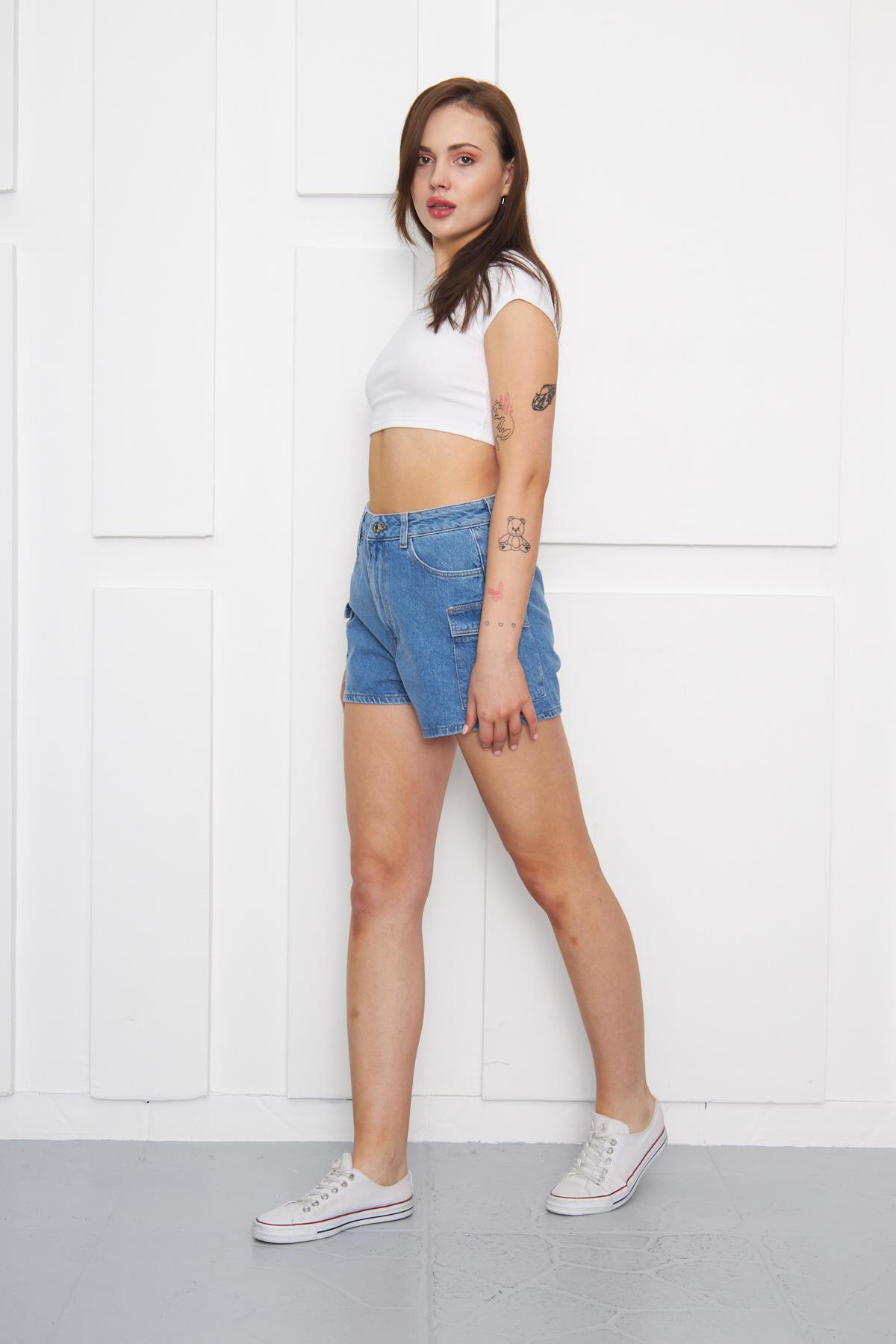 Yüksek Bel Kargo Kot Şort