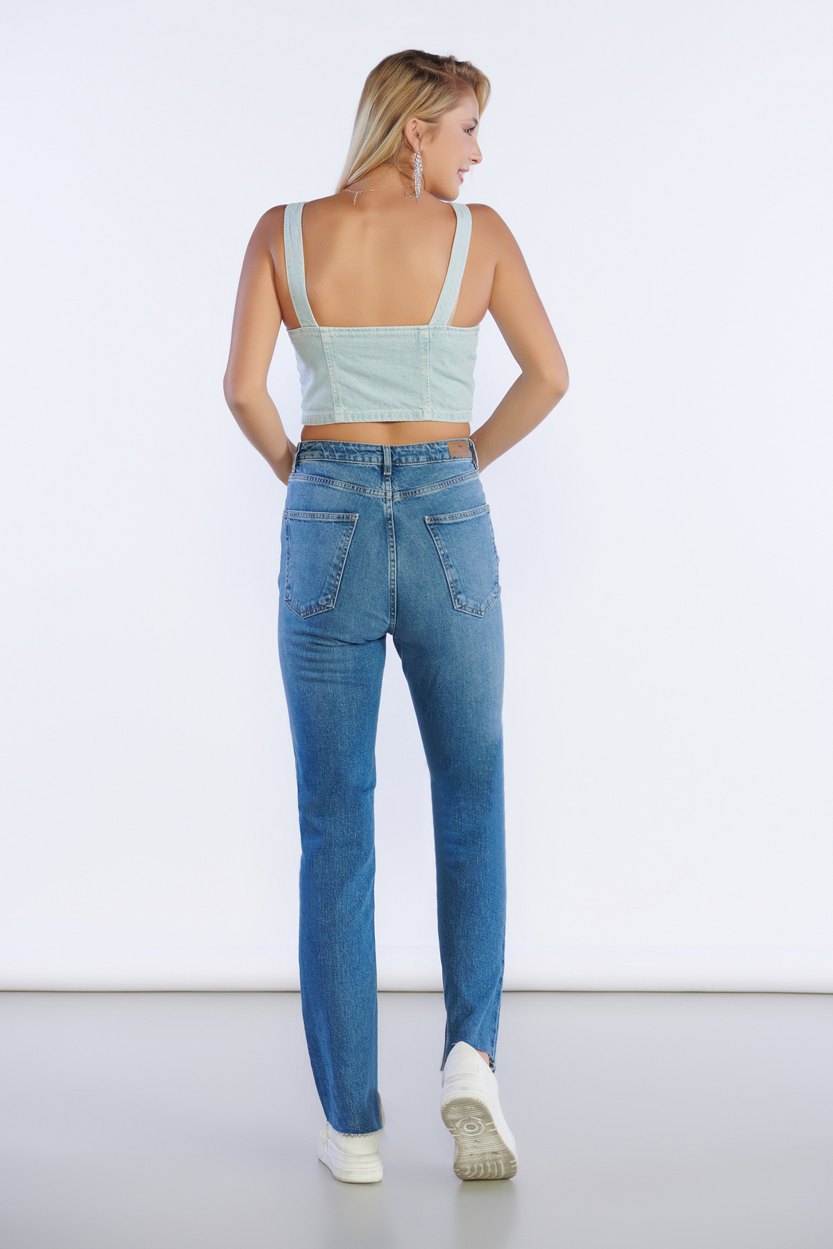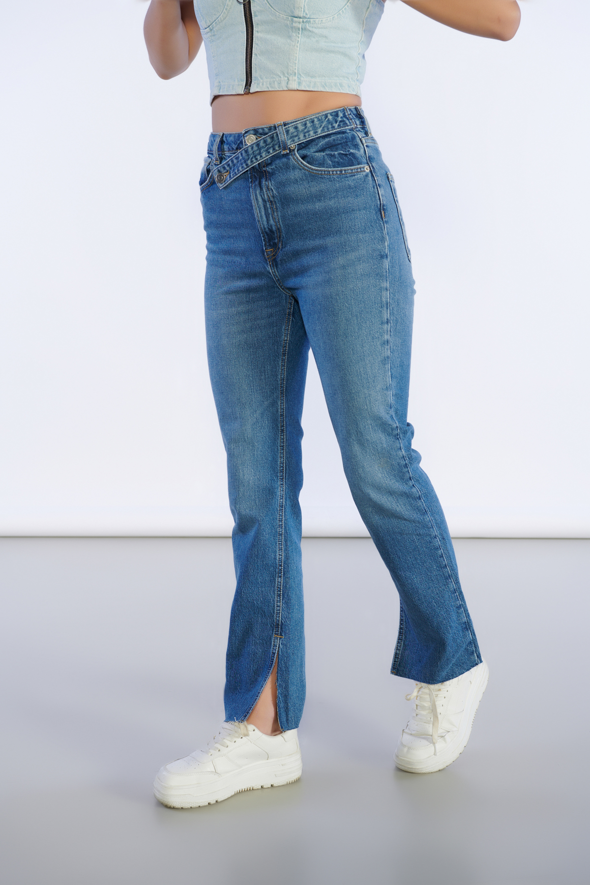 Yüksek Bel Kemer Detay Straight Jeans