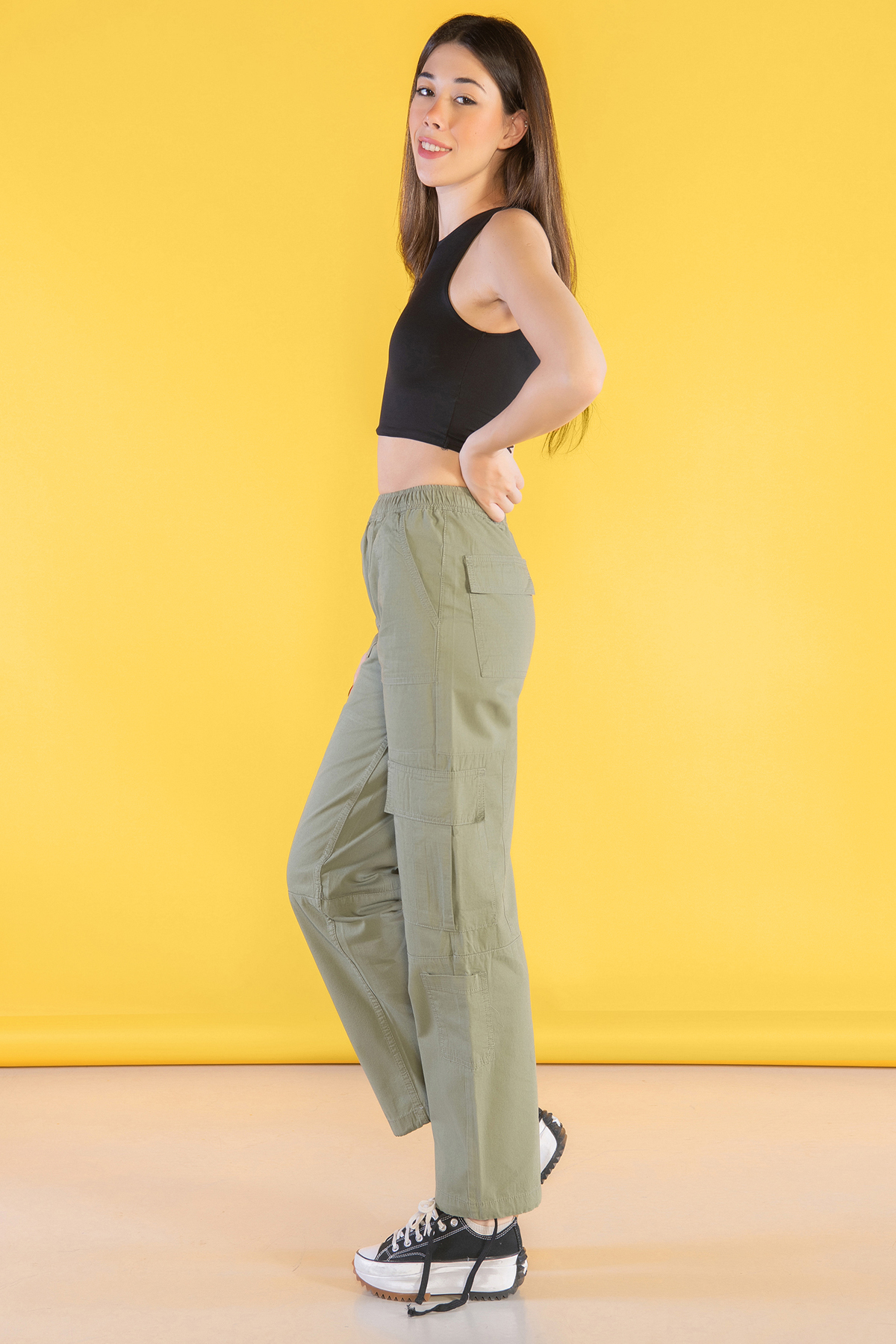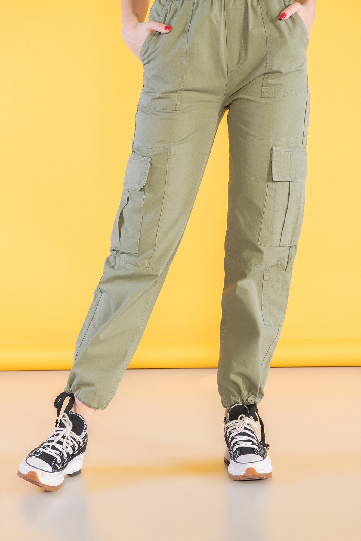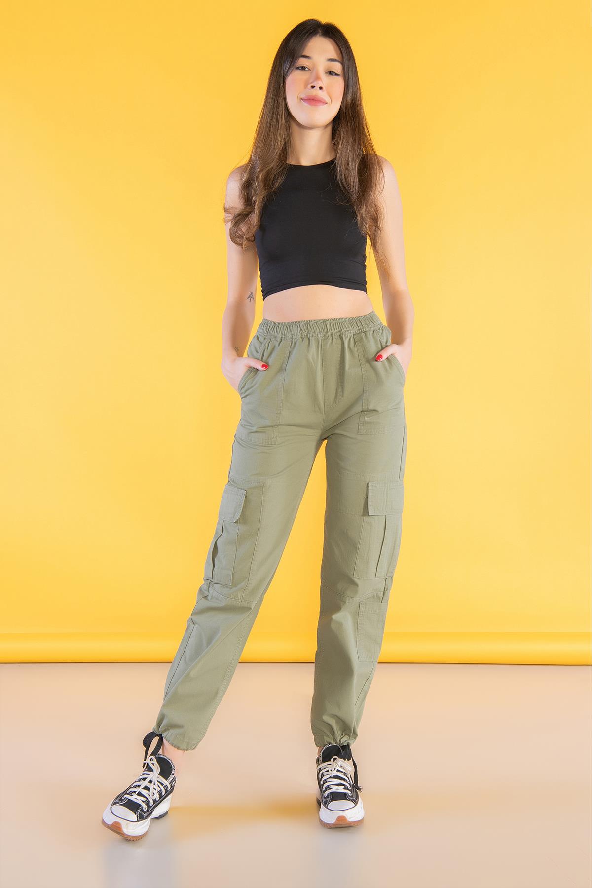 Yüksek Bel Stoperli Kargo Paraşüt Pantolon