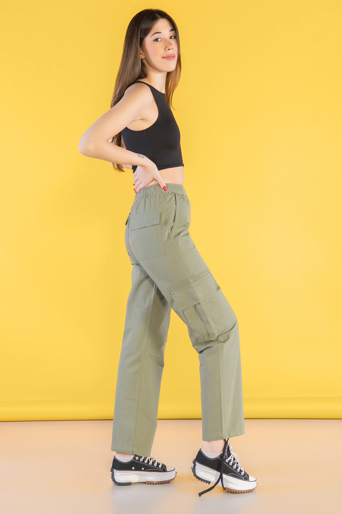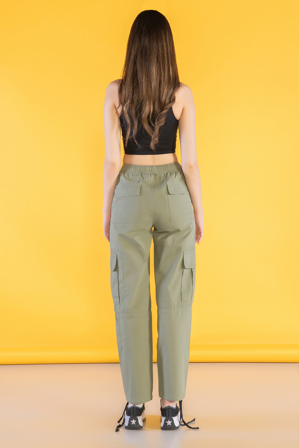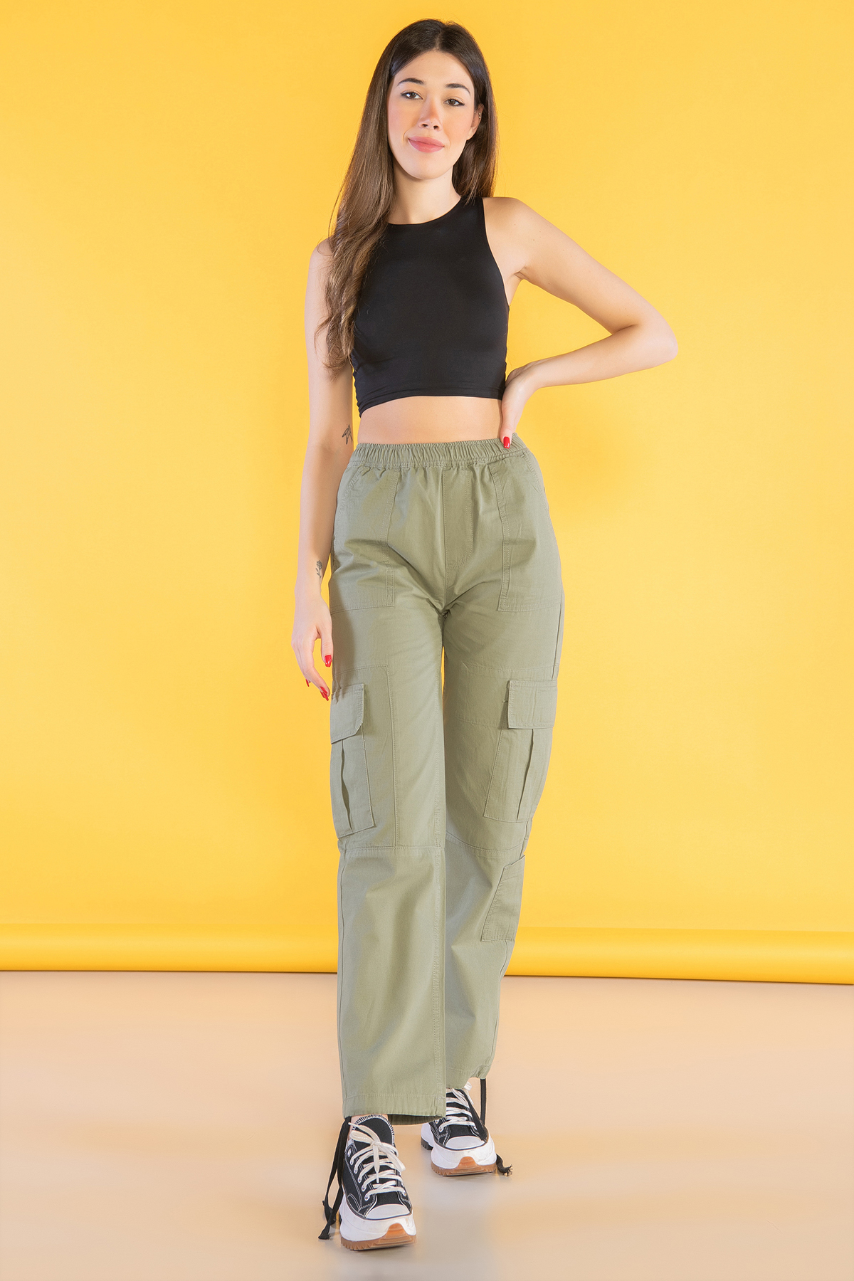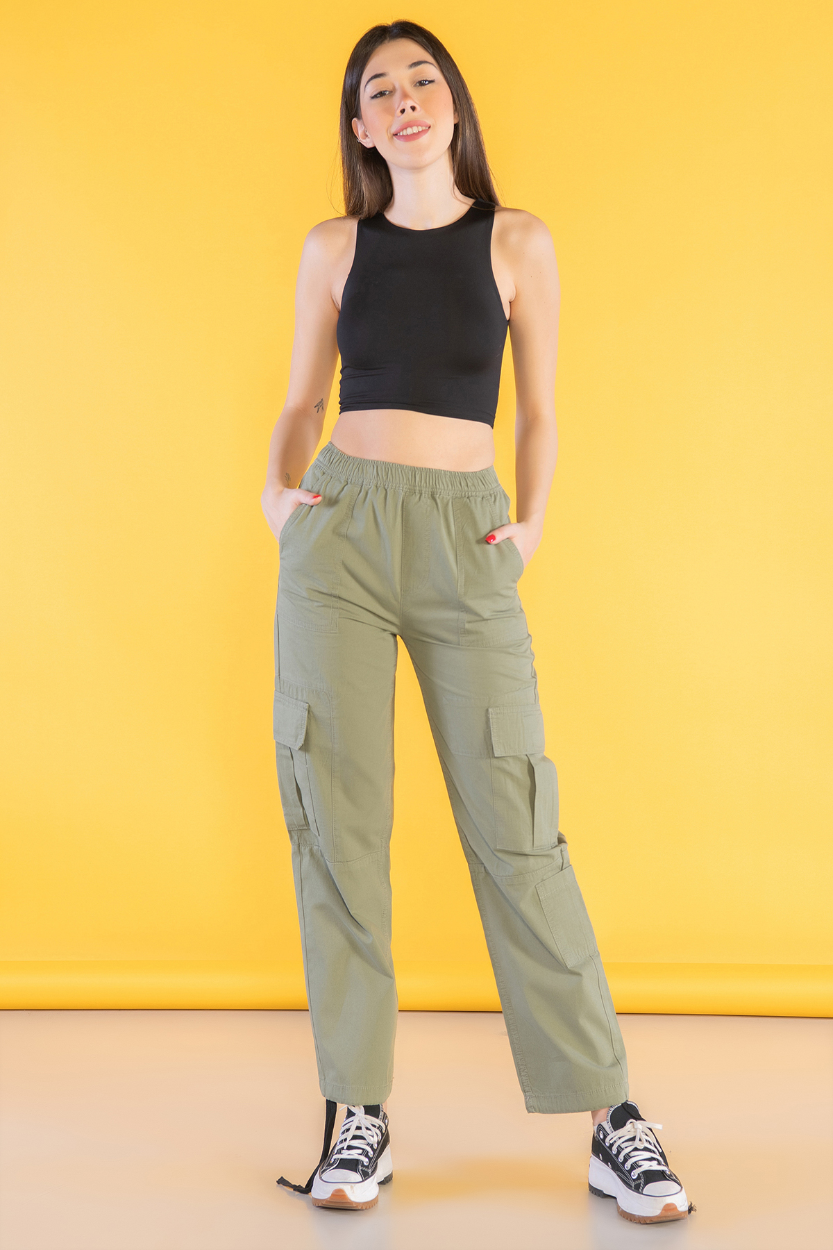 Yüksek Bel Stoperli Kargo Paraşüt Pantolon