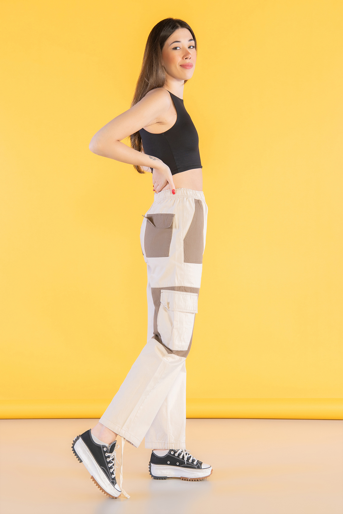 Yüksek Bel Stoperli Kargo Paraşüt Pantolon