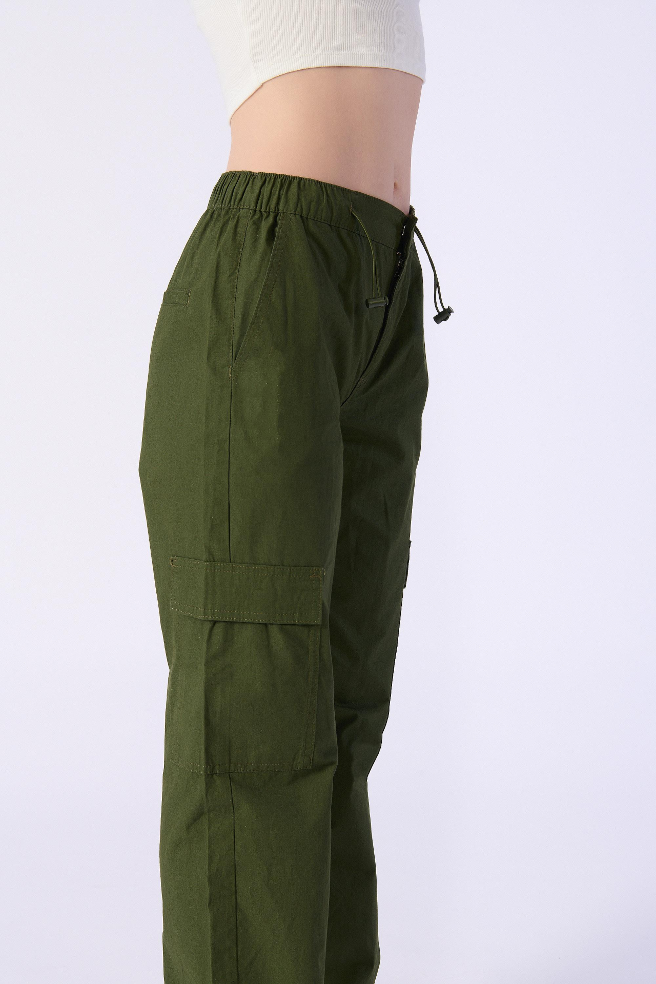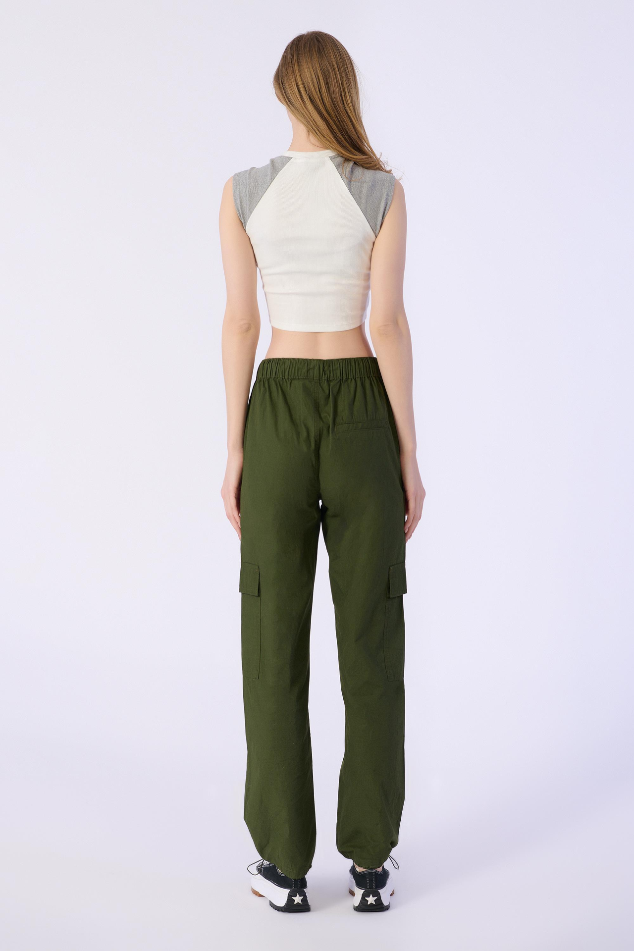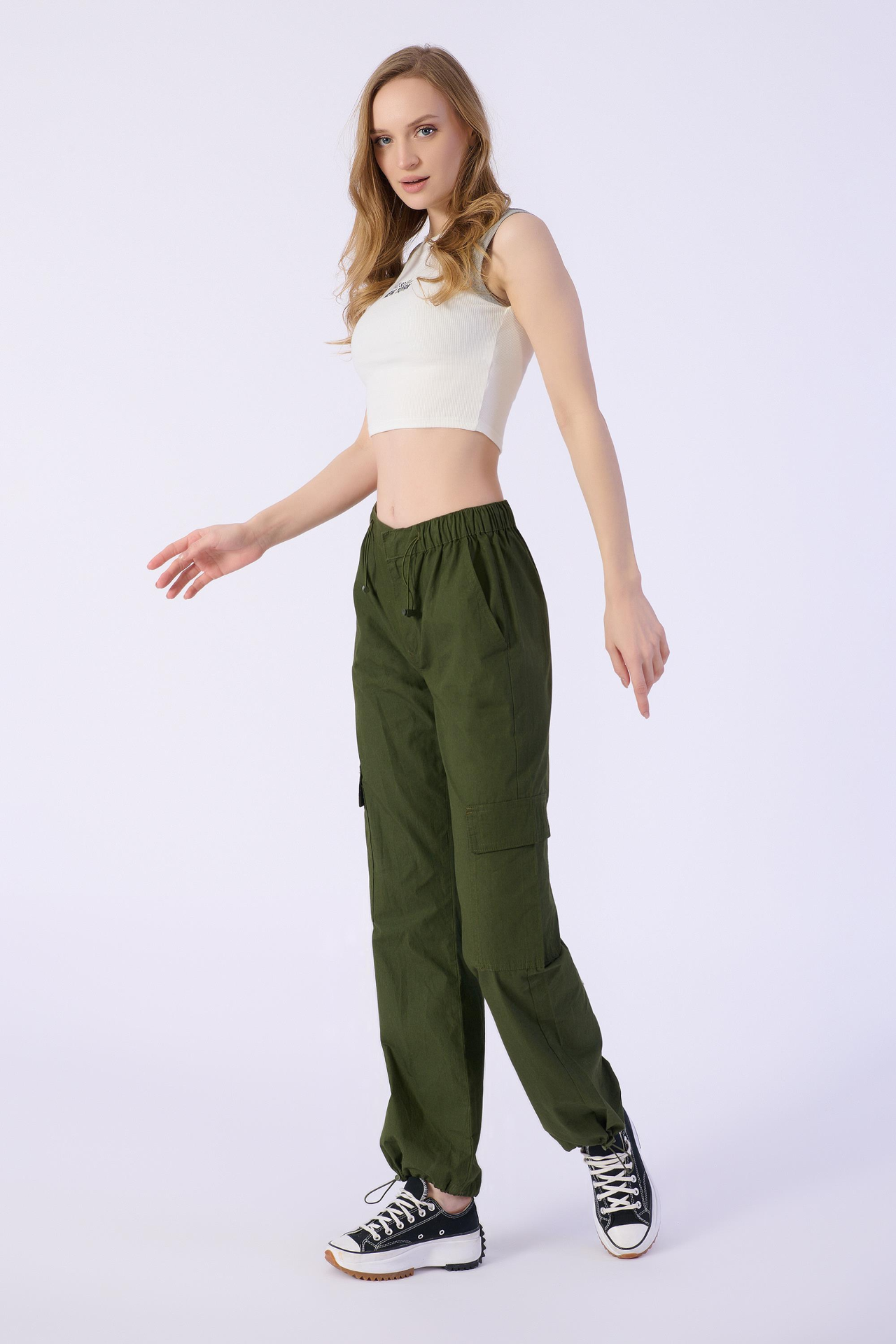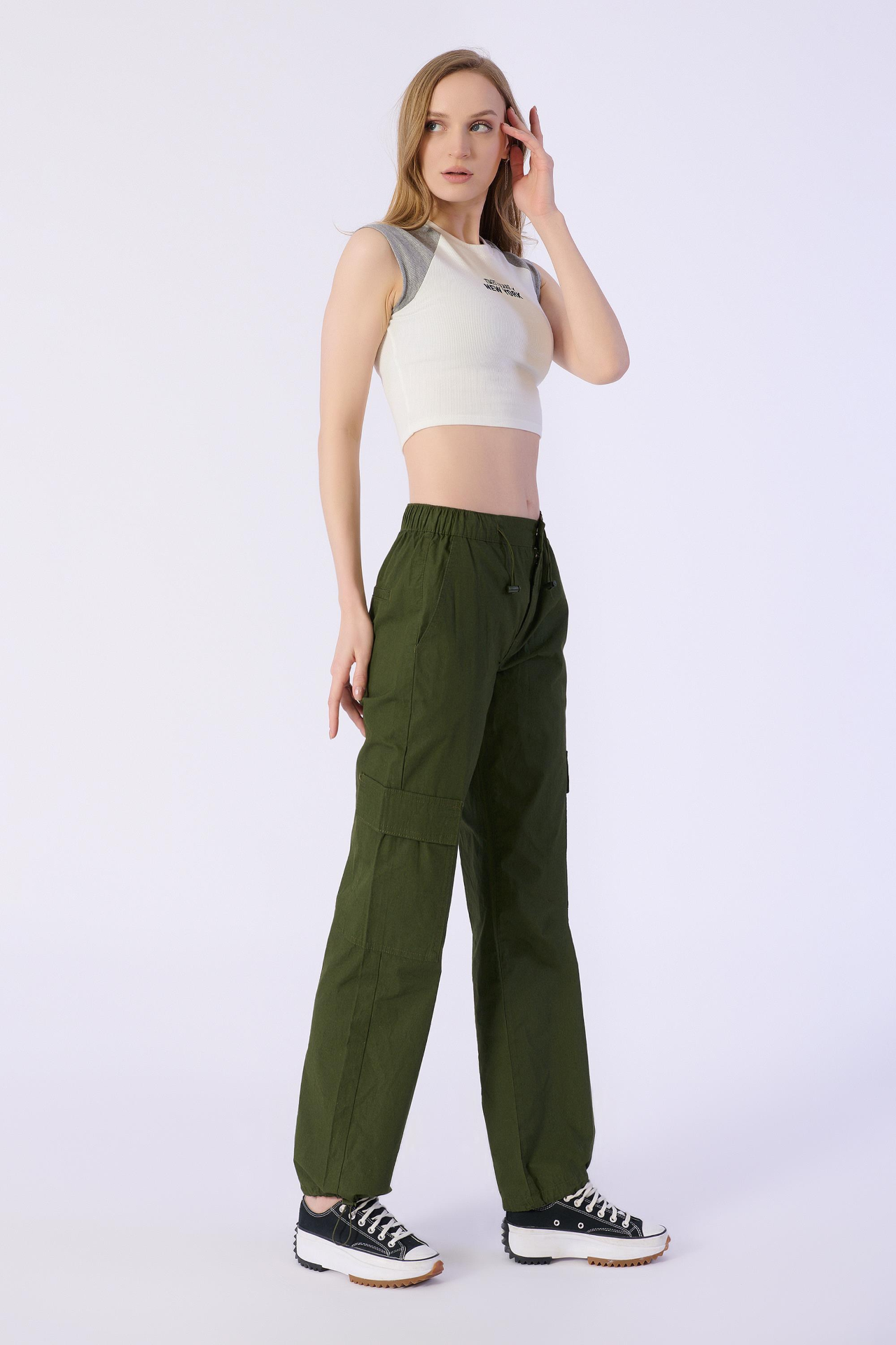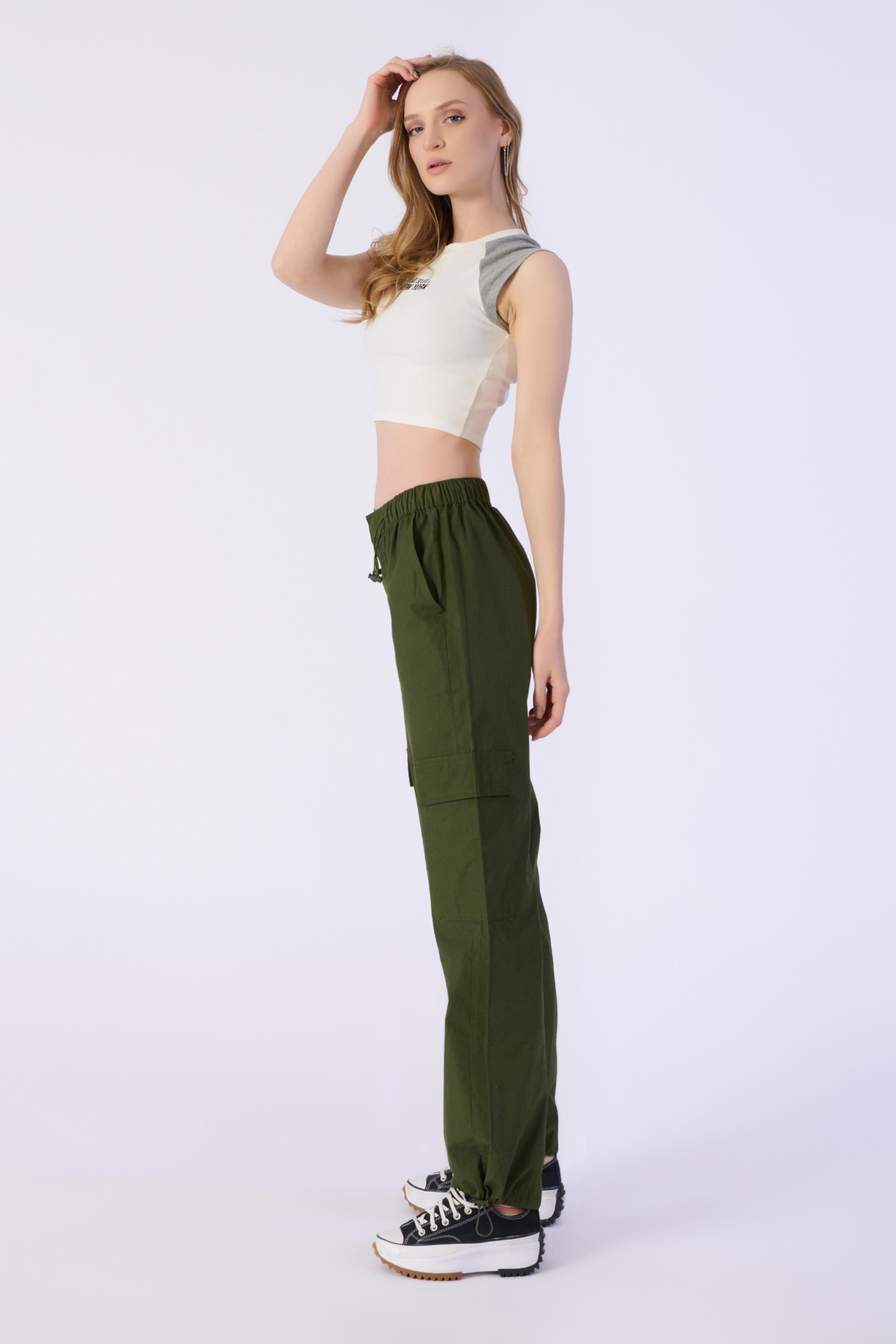 Yüksek Bel Stoperli Wide Leg Paraşüt Kargo Pantolon