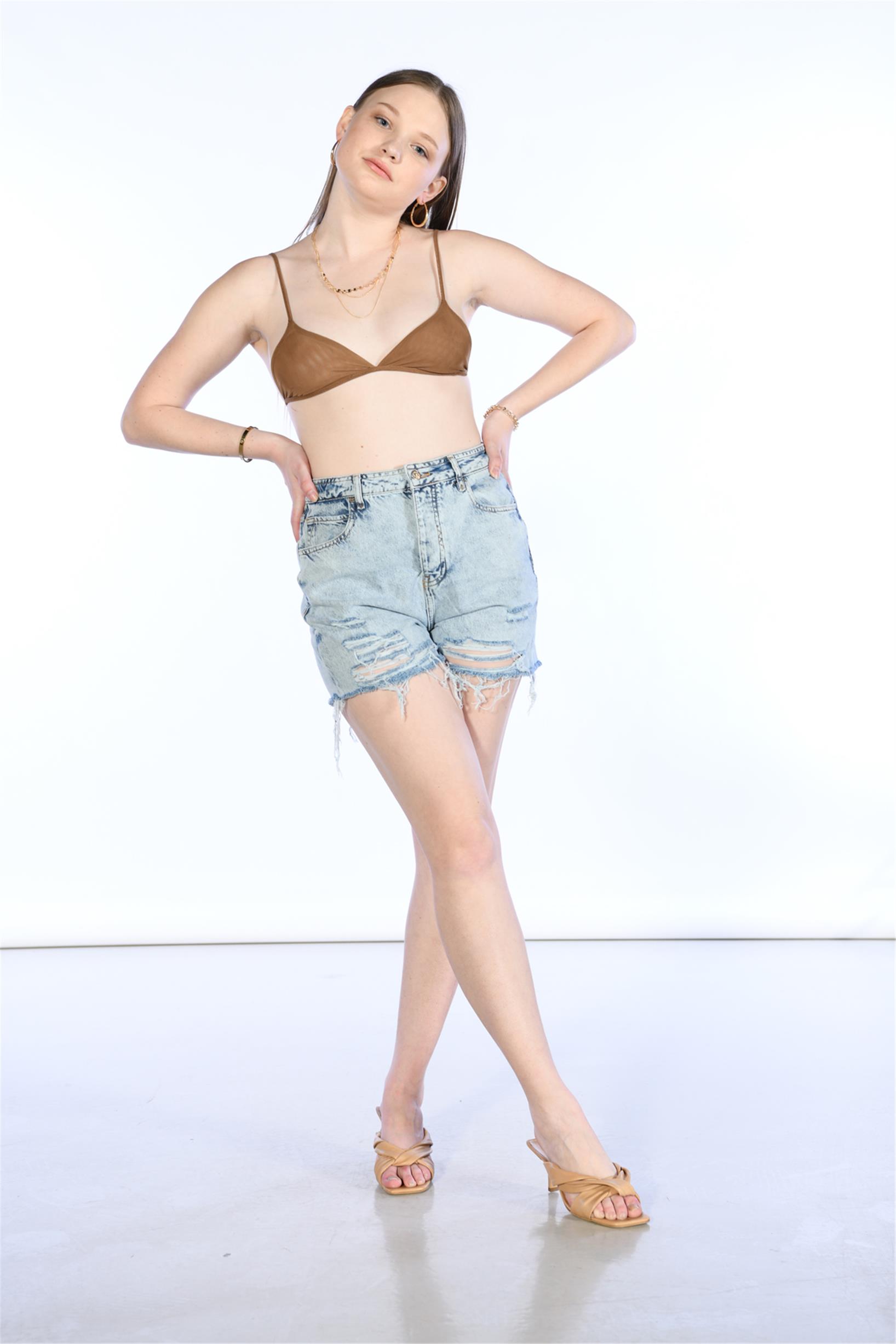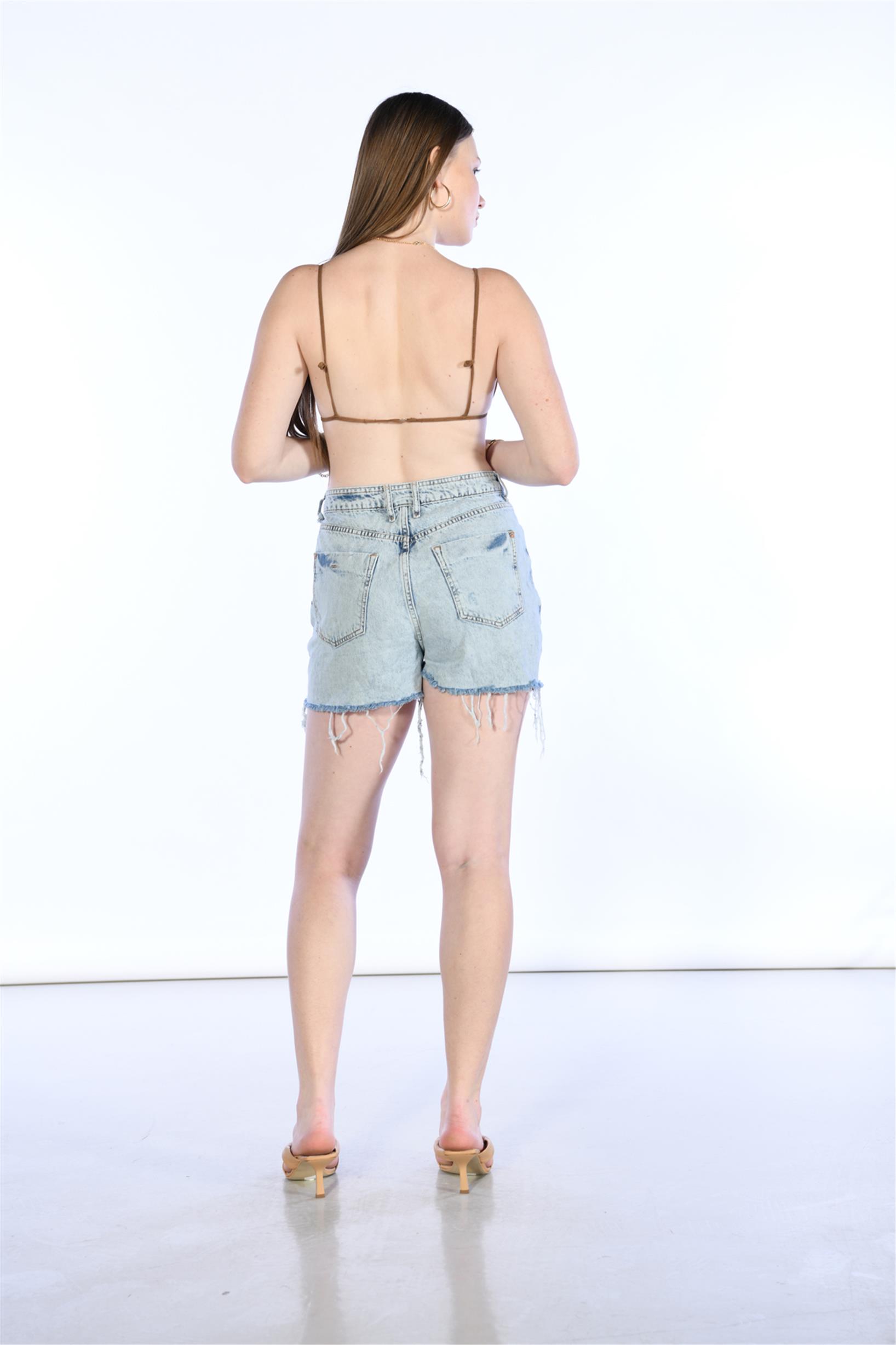 Yüksel Bel Lazerli Mini Kot Şort
