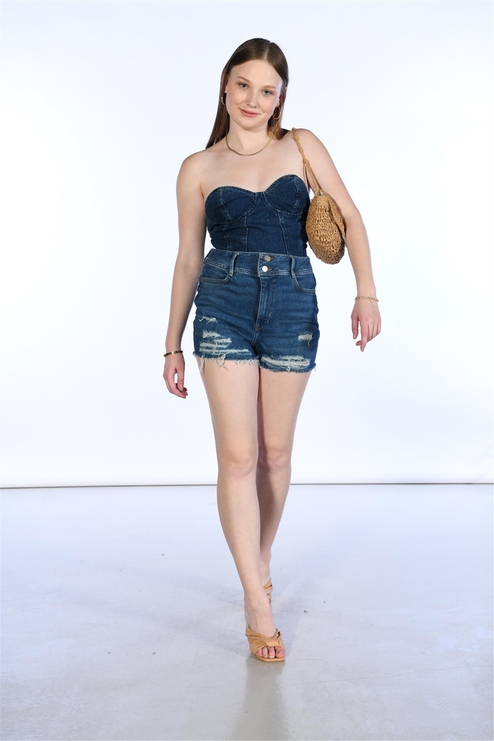 Yüksel Bel Lazerli Mini Kot Şort