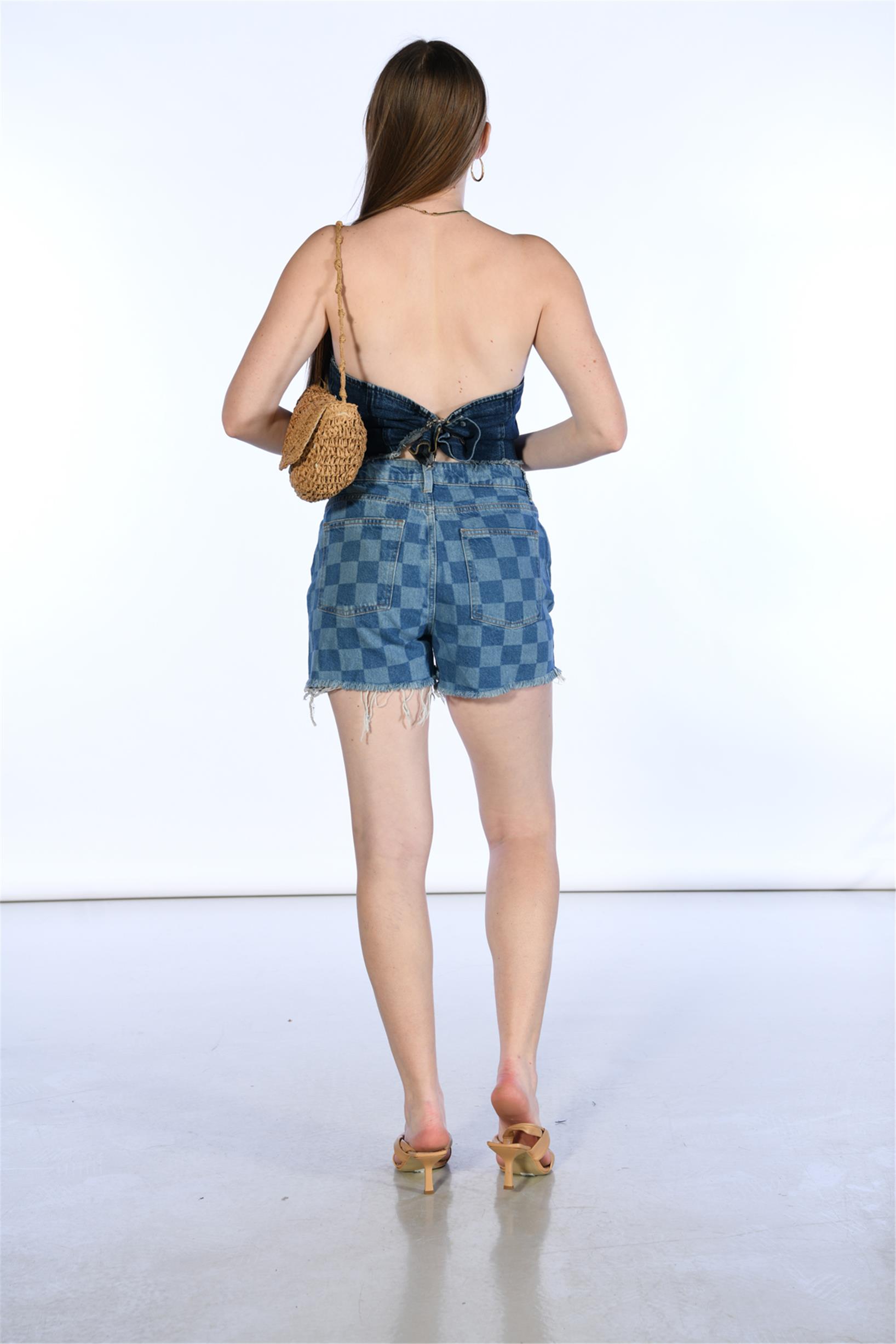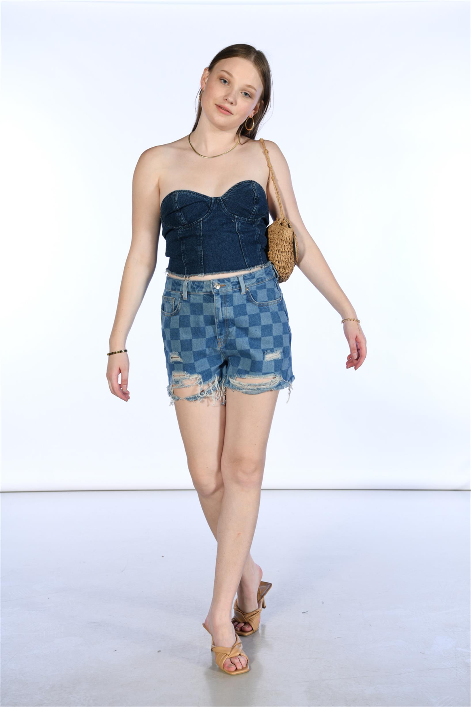 Yüksel Bel Lazerli Mini Kot Şort