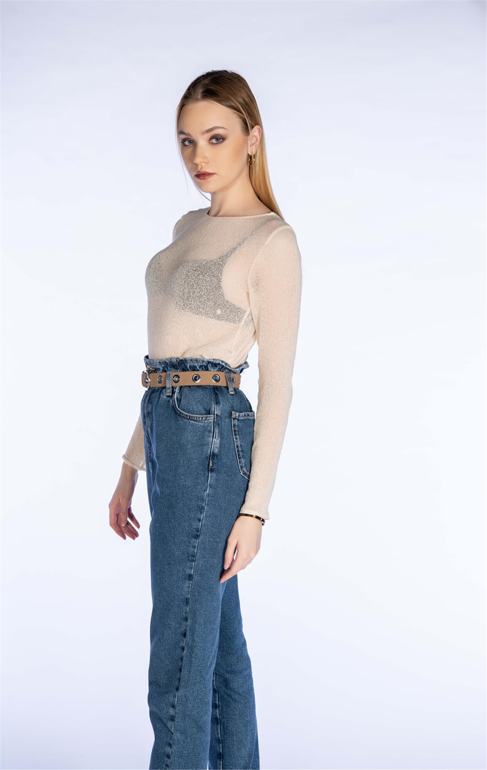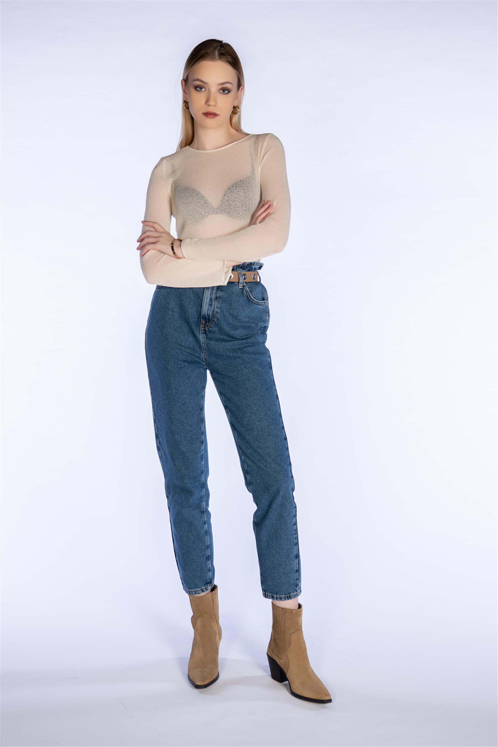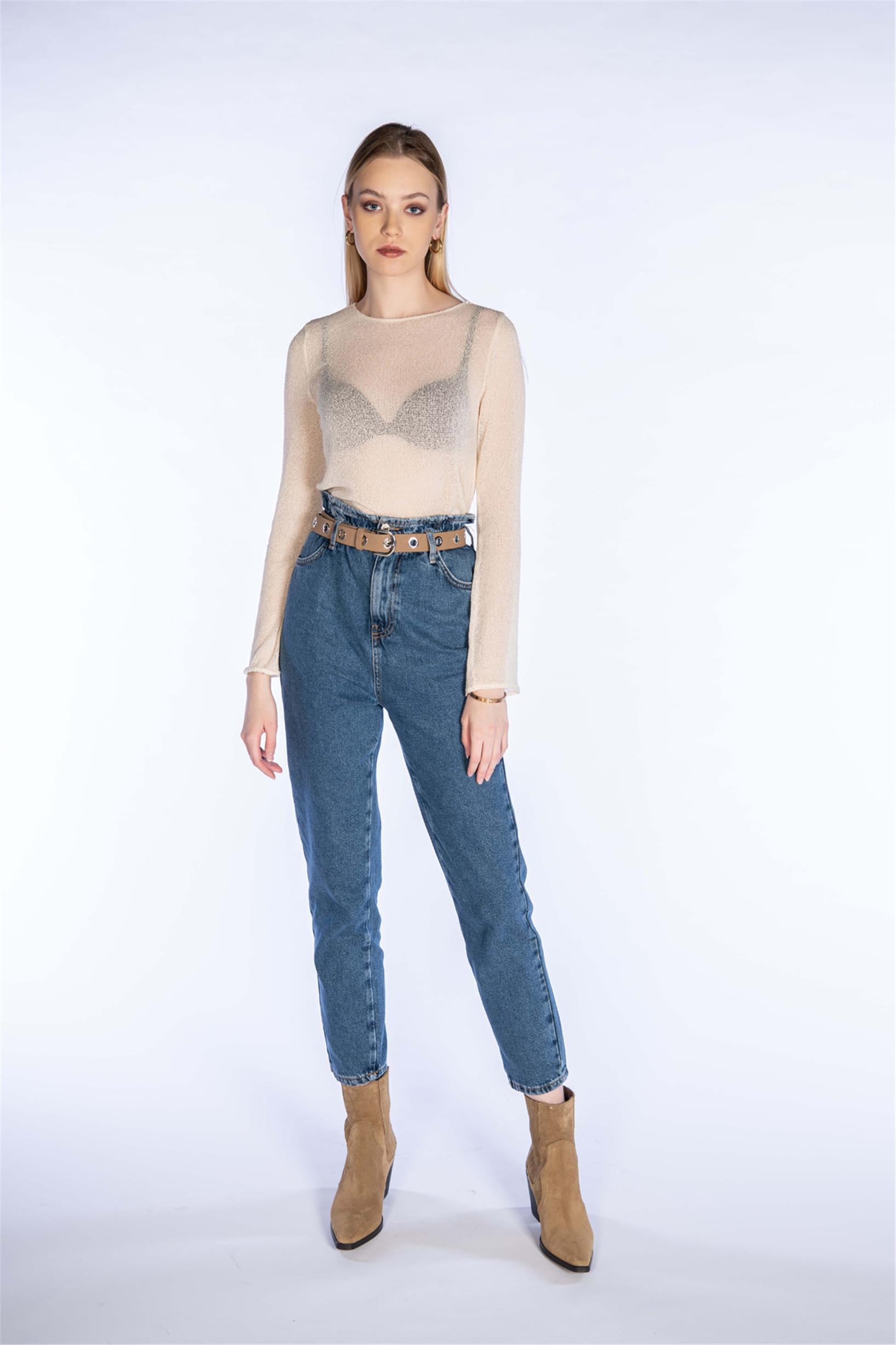 Yüksel Bel Paper Bag Mom Jeans